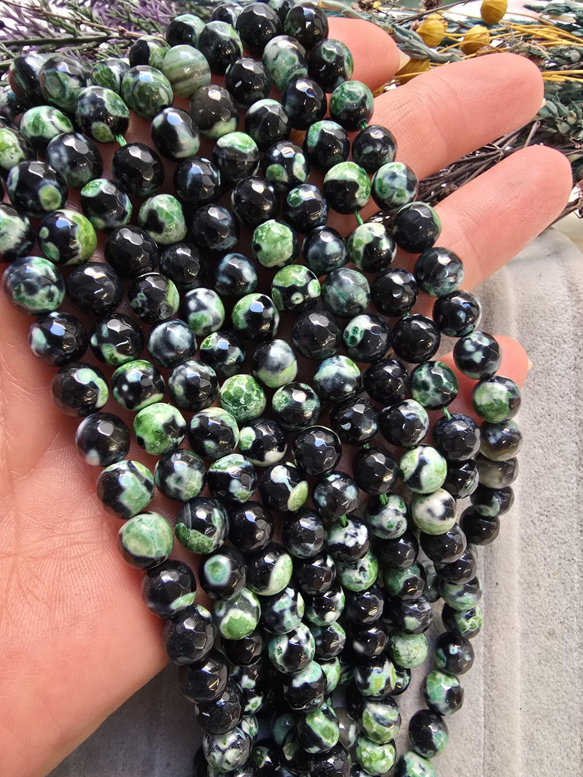 - Fosforlu Faset Kesim Yeşil Akik Doğal Taşın çapı 8 mm dir.