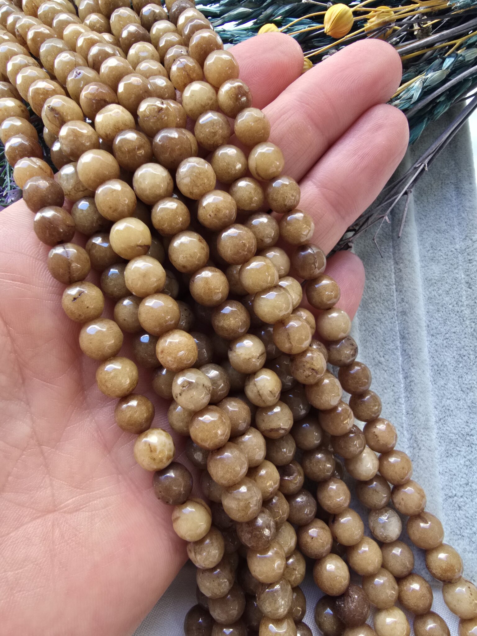 - 1 dizi Labradorit Renkli Ceyt doğal tasında 46 adet tanecik bulunur.
