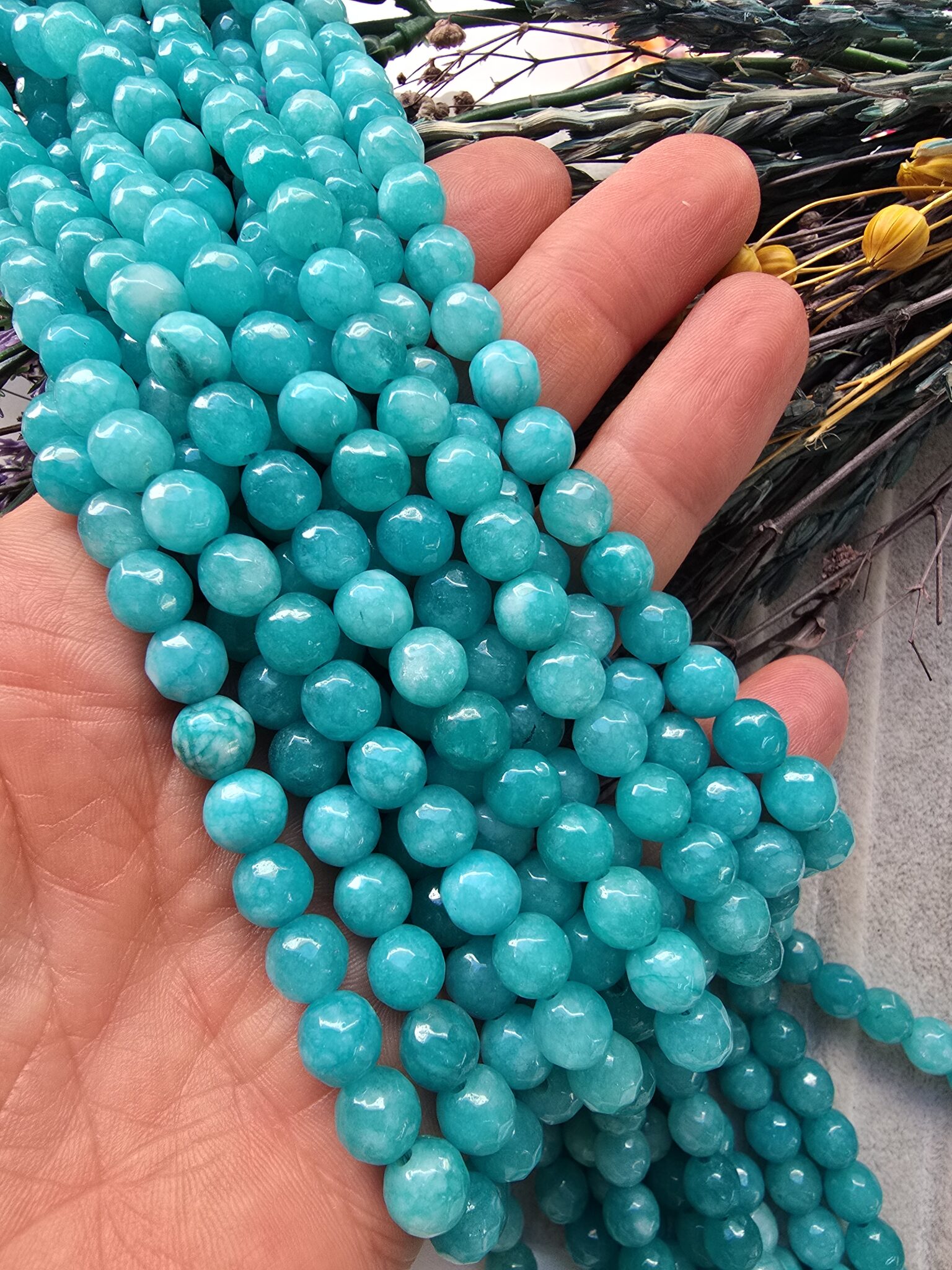 - 1 dizi Larimar Renkli Ceyt doğal tasında 46 adet tanecik bulunur.