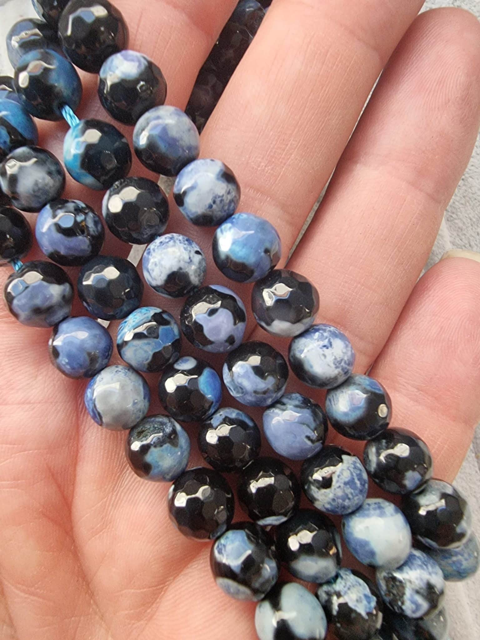 8 MM Faset Turkuaz Siyah Akik Doğal Taş