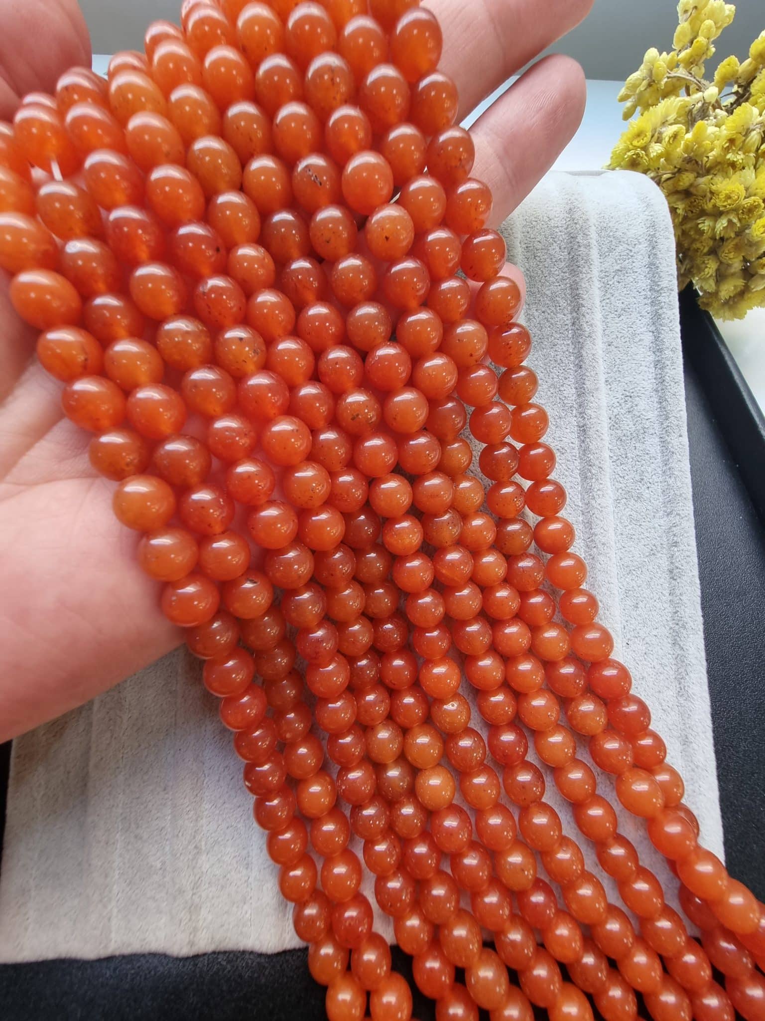 - 1 dizi Karnelyan Ceyt doğal tasında 48 adet tanecik bulunur.