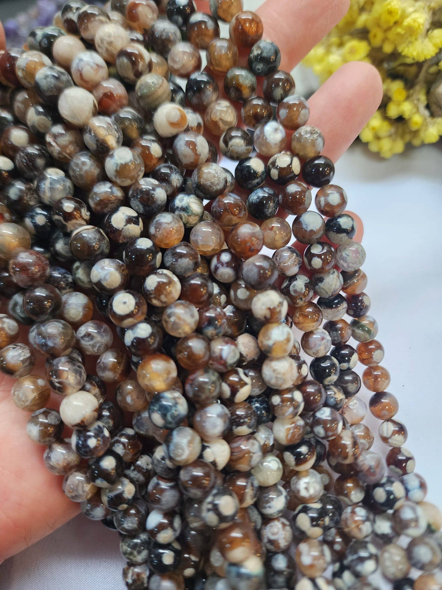 - Benekli Kahve Akik Doğal Taşın çapı 8 mm dir.