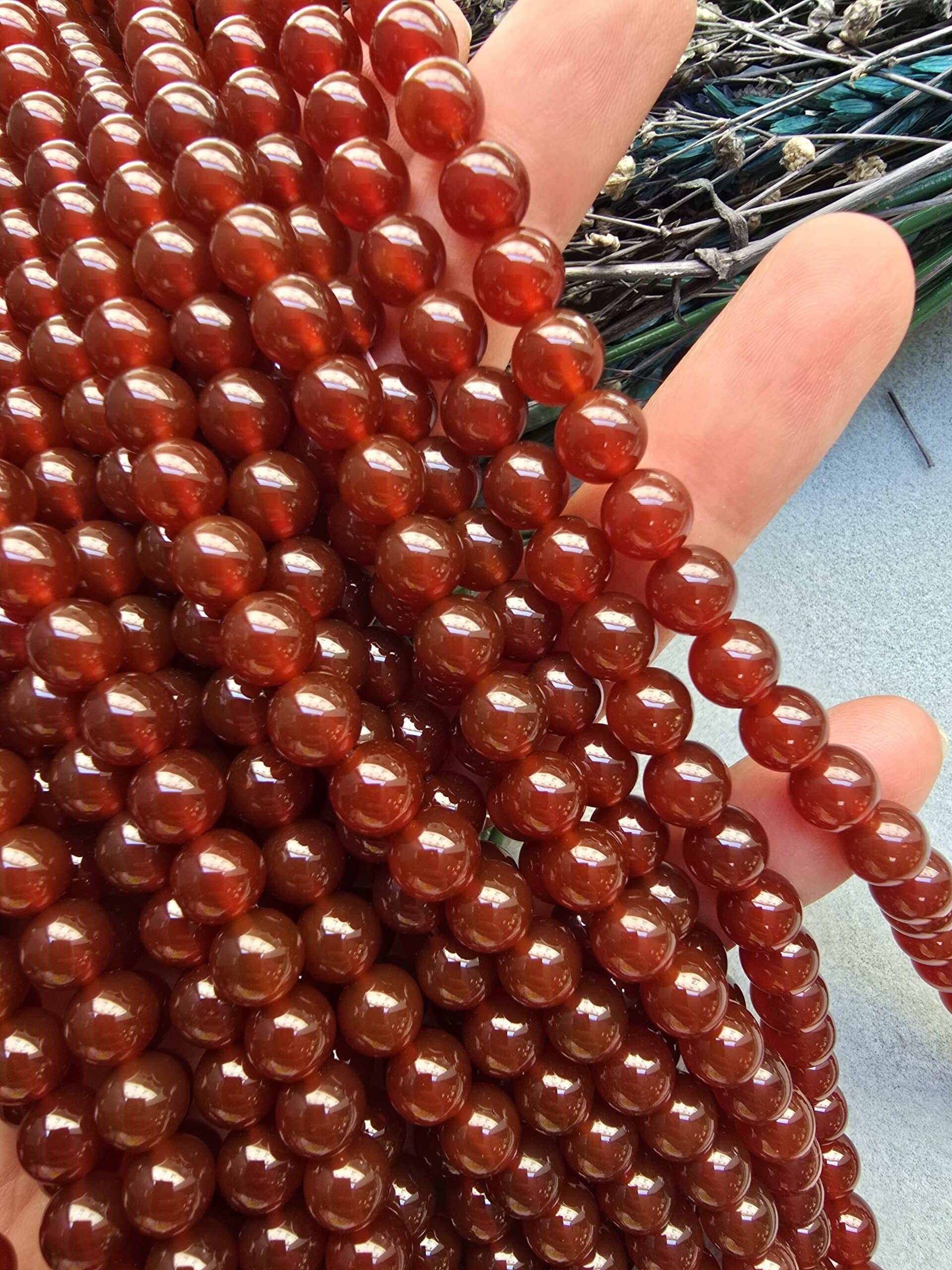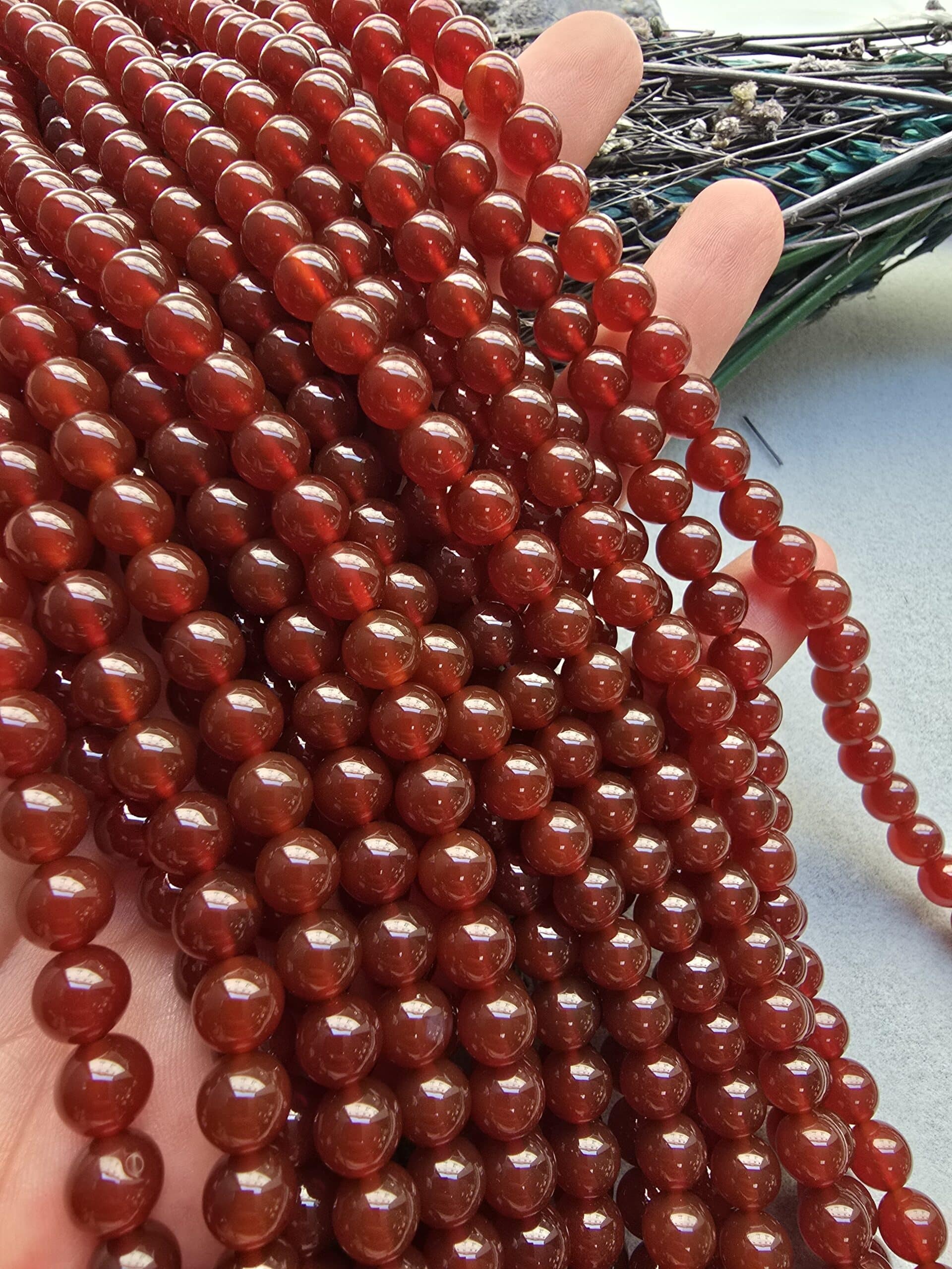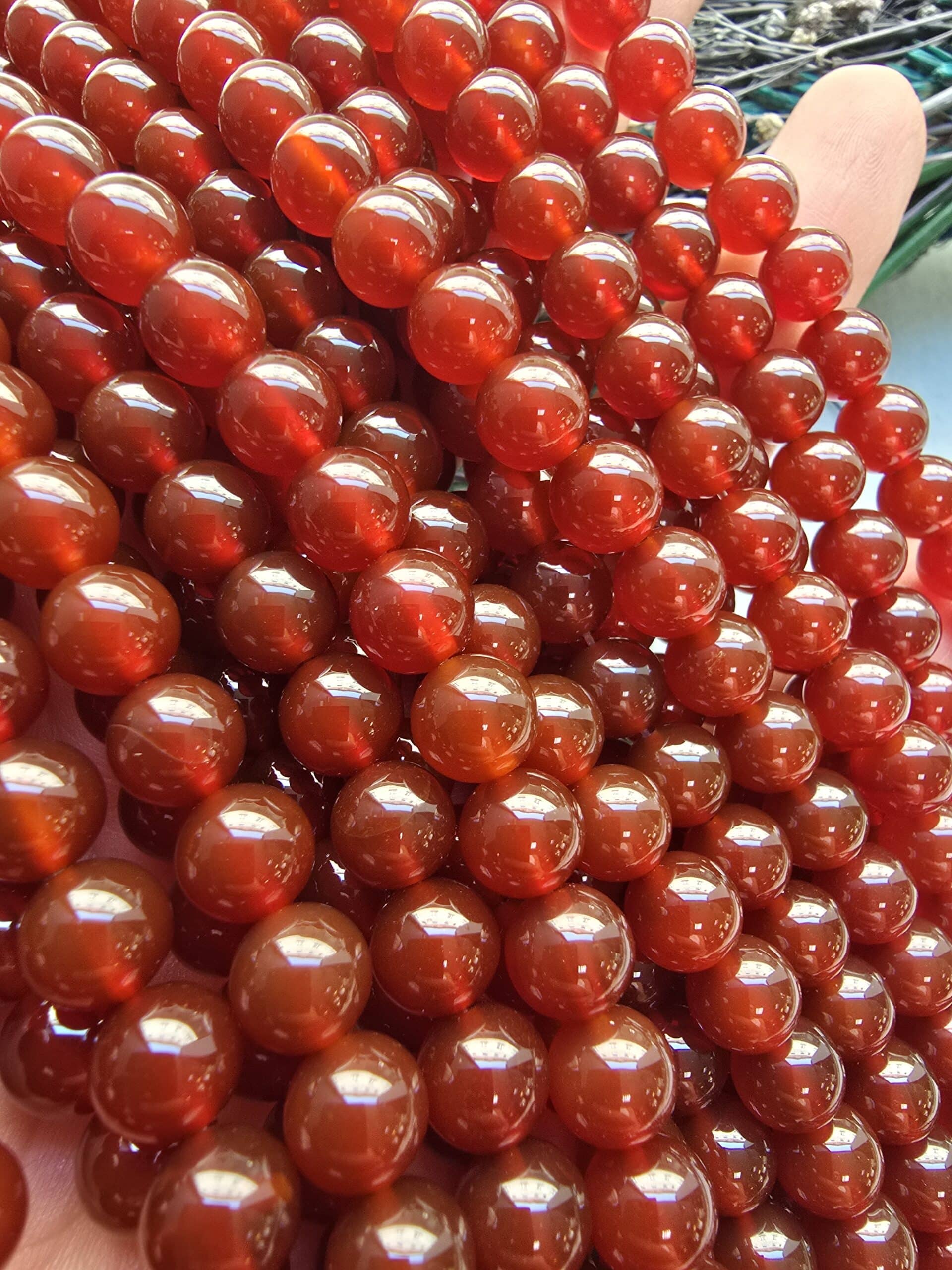 - Koyu Karnelyan Akik Doğal Taşın çapı 8 mm dir.