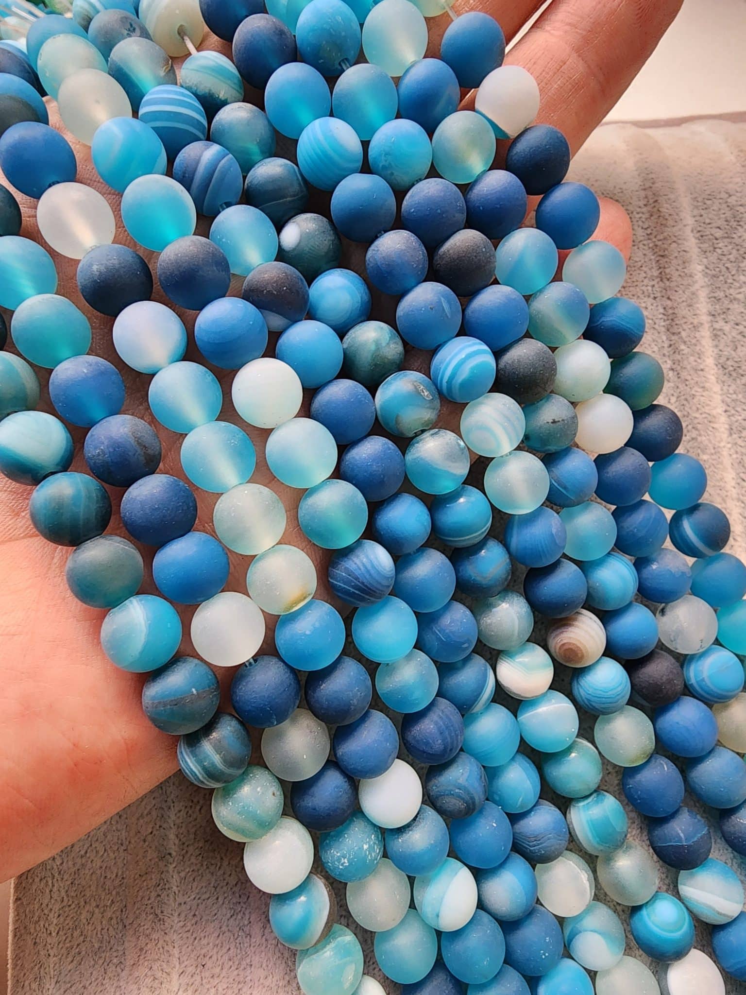 - 8 MM Mat Mavi Renkli Küre Dizi Akikleri içerindeki kayaç yapısından dolayı renk farklılıkları gösterebilir. Bu tamamen taşın doğallığından kaynaklanmaktadır.