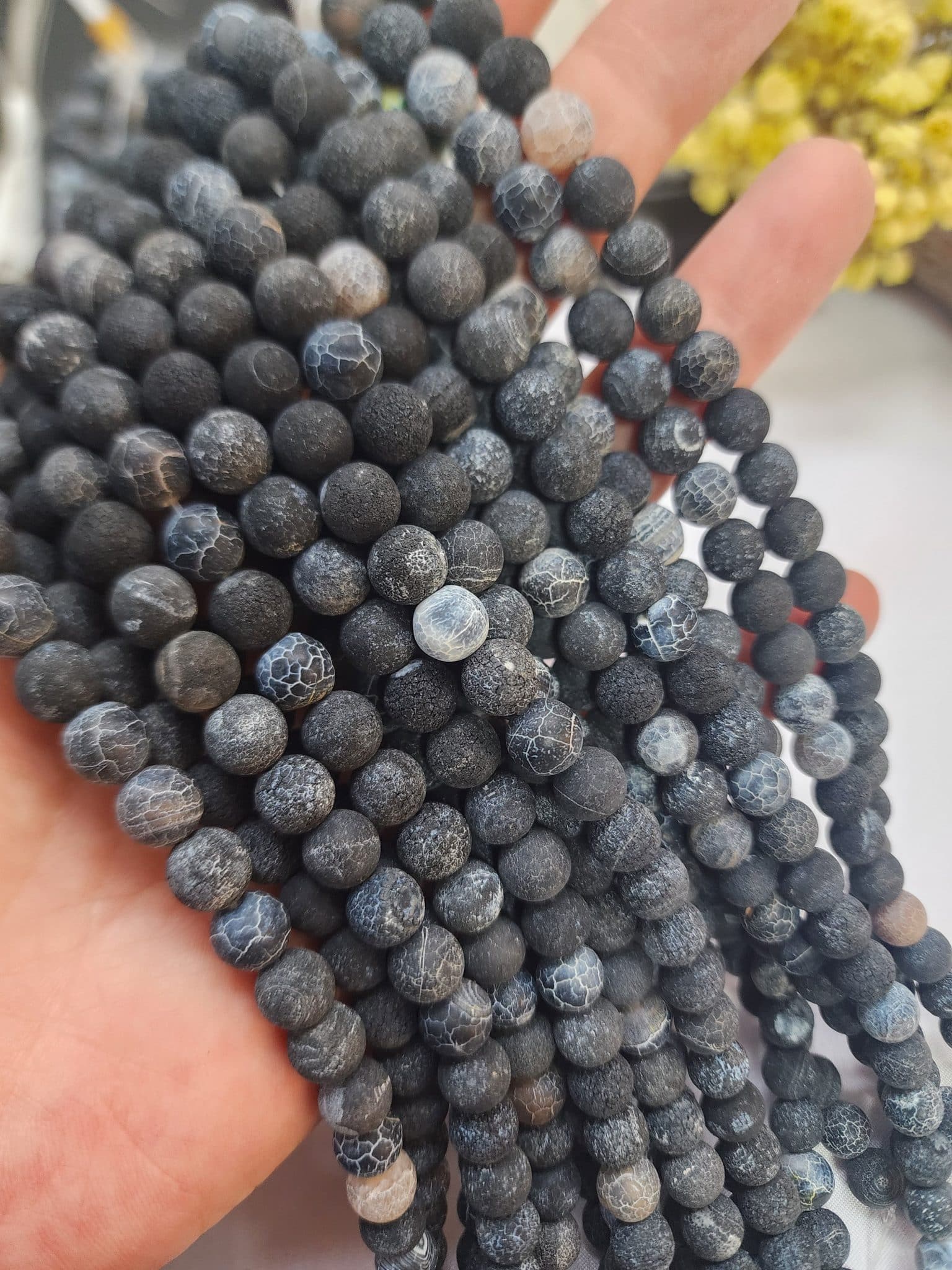 - 8 MM Mat Siyah Küre Dizi Akikleri içerindeki kayaç yapısından dolayı renk farklılıkları gösterebilir. Bu tamamen taşın doğallığından kaynaklanmaktadır.