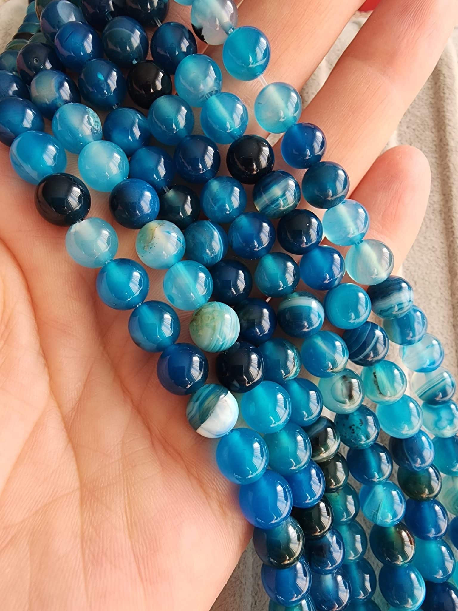 - Mavi Damarlı Akik Doğal Taşın çapı 8 mm dir.