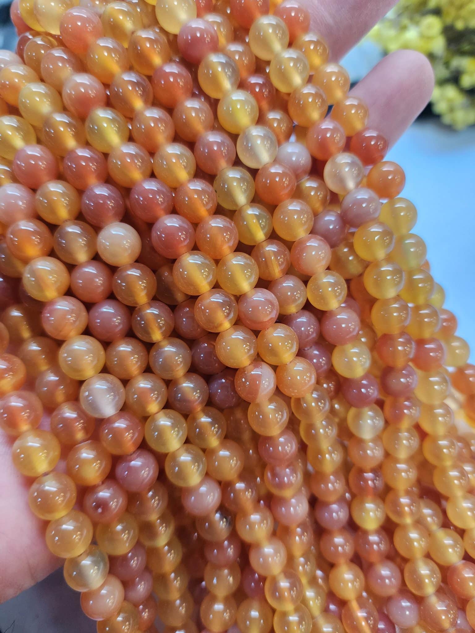 - Turuncu Mix Akik Doğal Taşın çapı 8 mm dir.