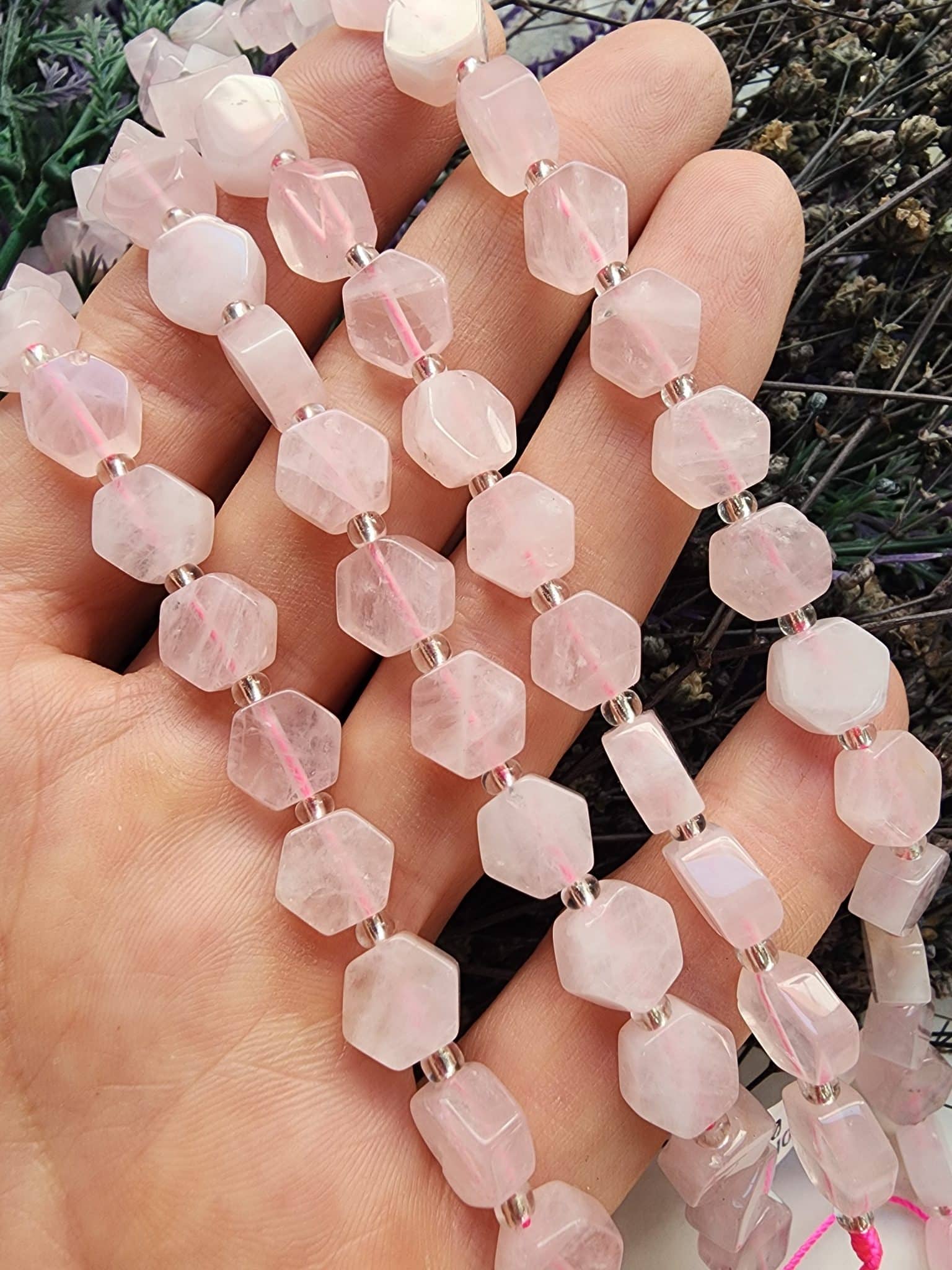 - 1 Dizi 8×8 MM Petek Doğal Pembe Kuvars Taşında 38 Adet Doğal Taş Boncuk Bulunur.