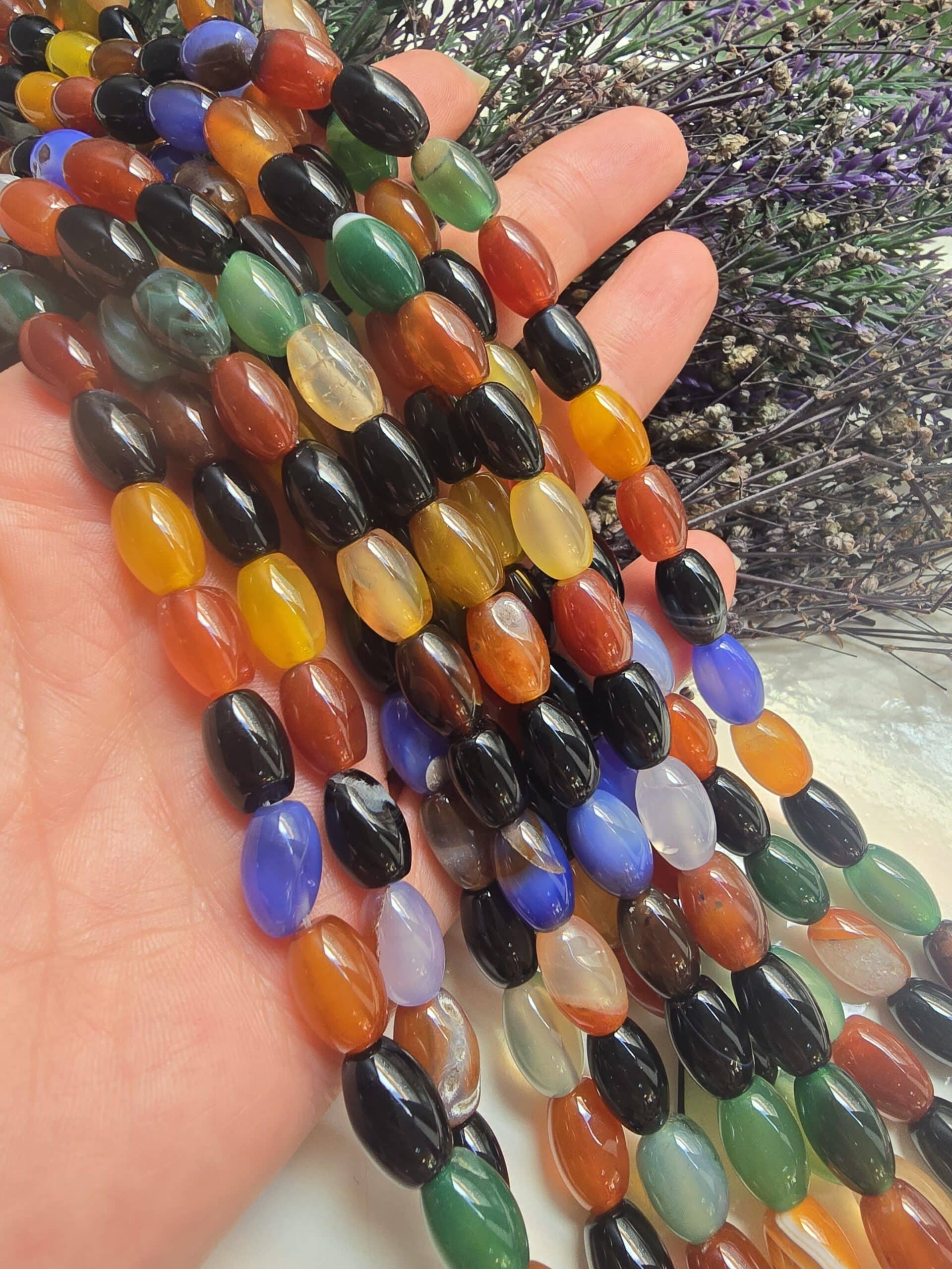 - 1 dizi 8×12 MM Yeşil Akik Taşında 32 Adet Doğal Taş Boncuk Bulunur.