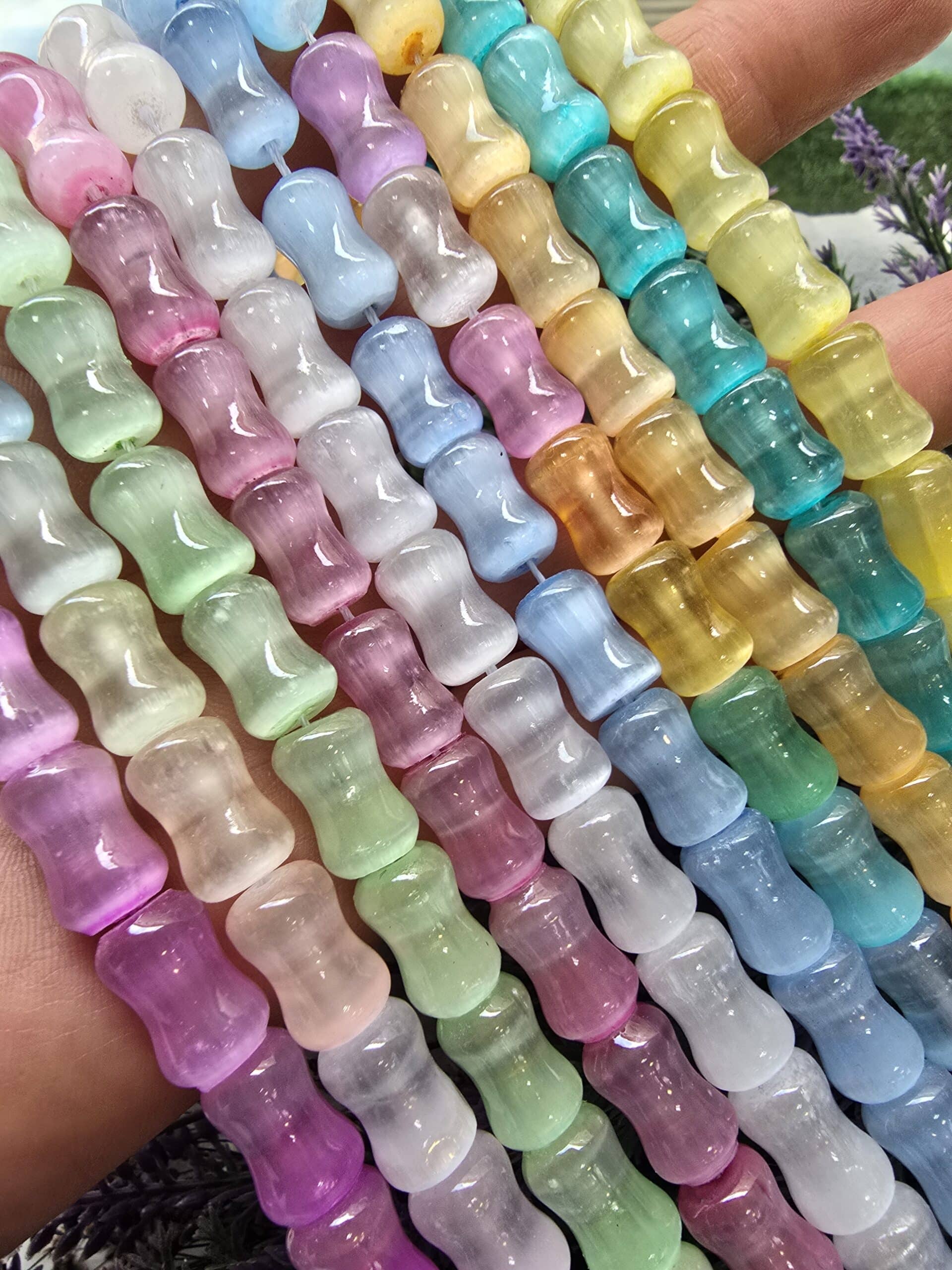 - 1 dizi 8×13 MM Renkli Selenit Taşında 30 Adet Doğal Taş Boncuk Bulunur.