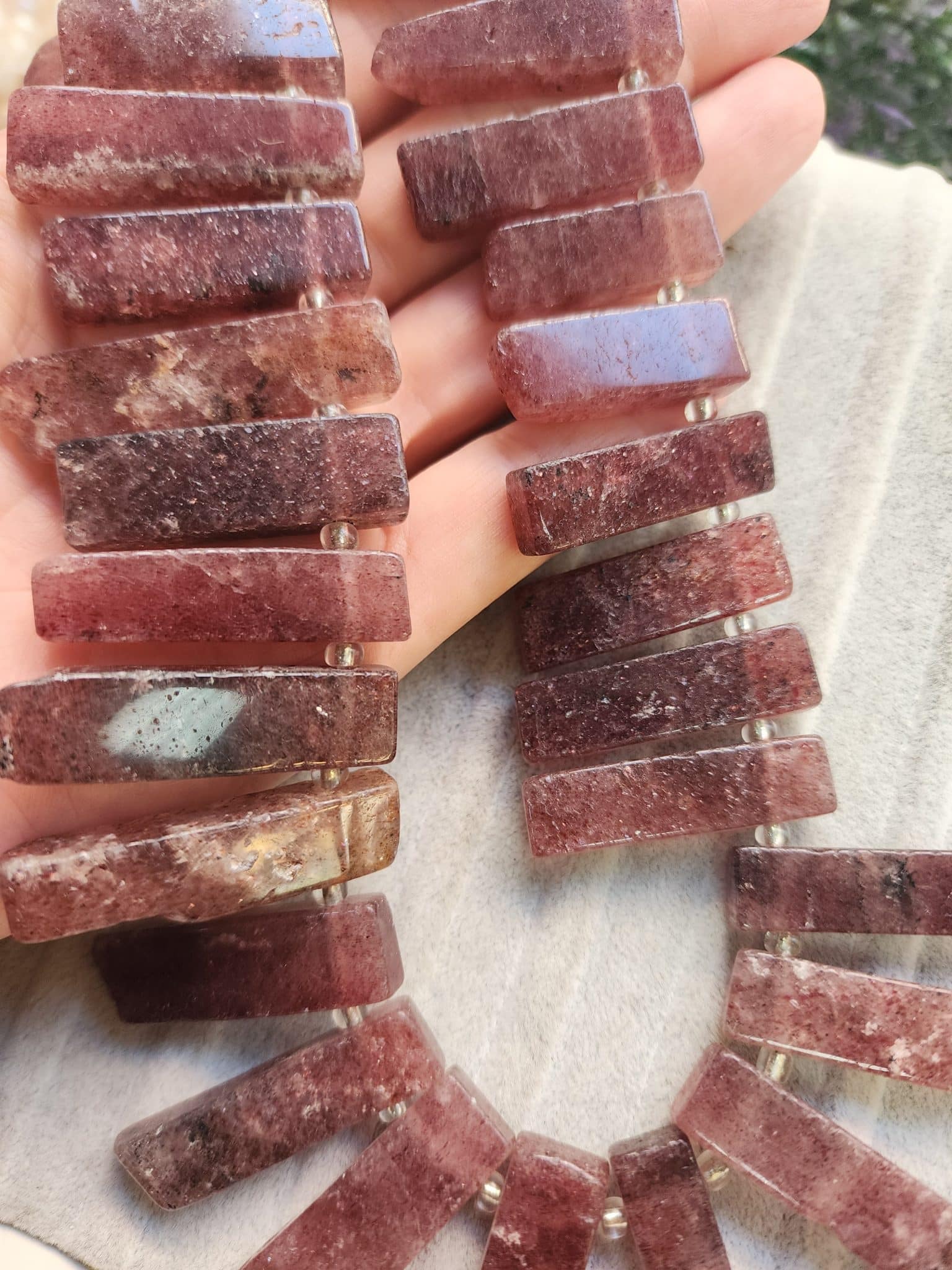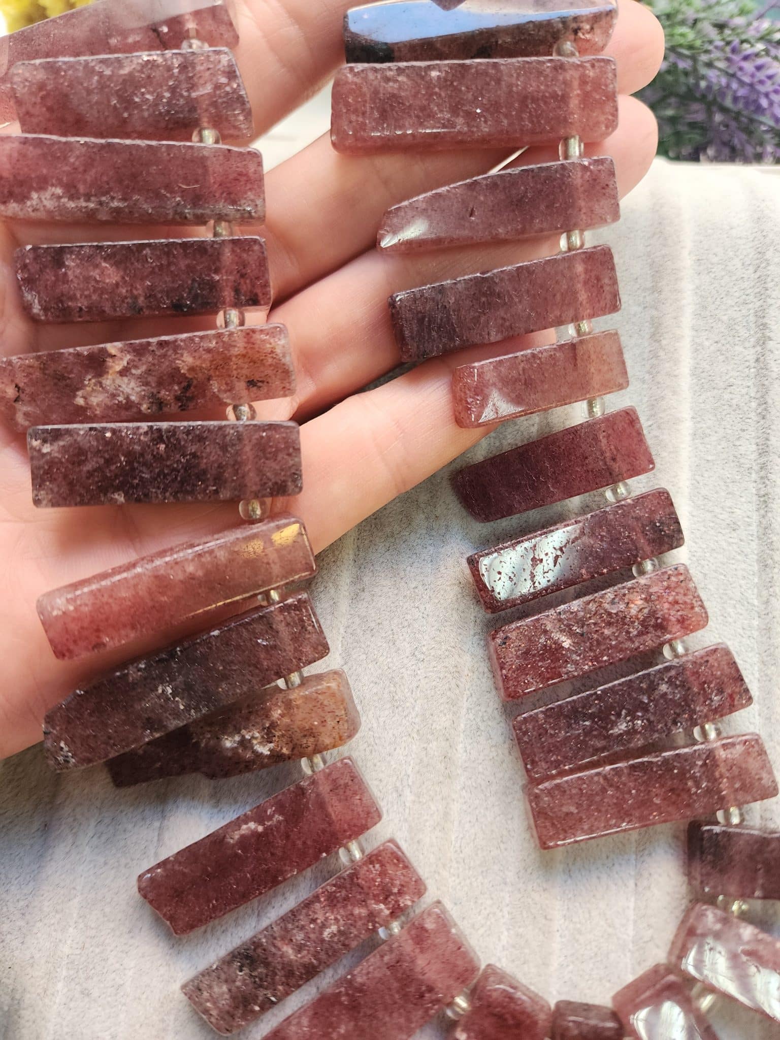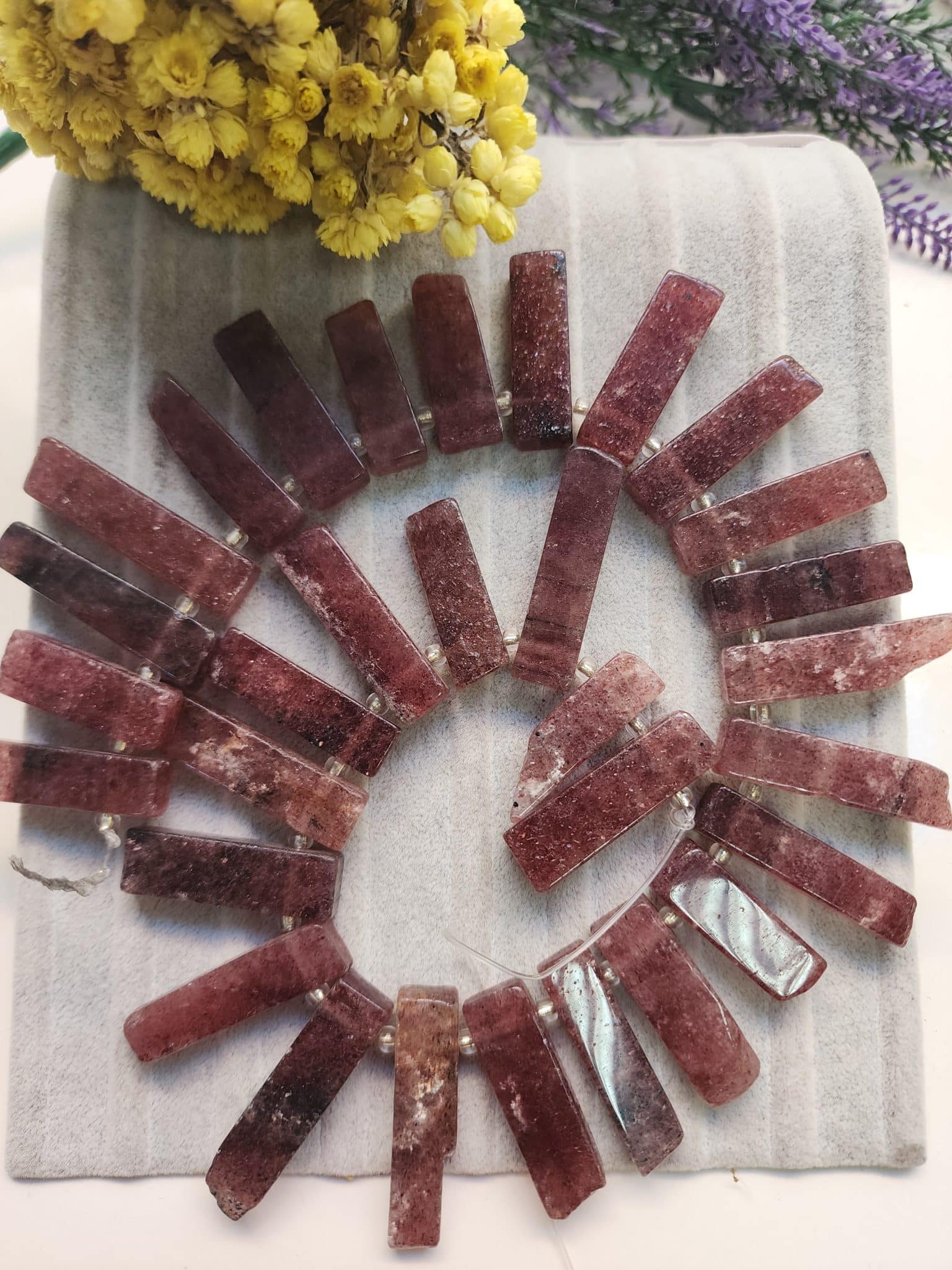 - 1 dizi Çubuk Çilek Kuvars Taşında 30 Adet Doğal Taş Boncuk Bulunur.