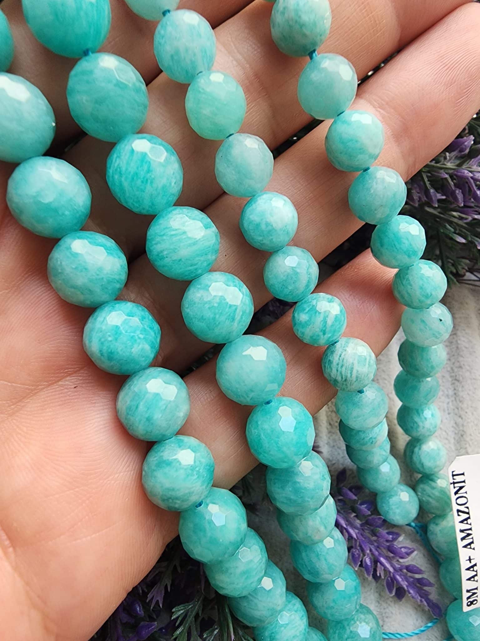 - 8 MM Faset Küre Amazonit dizi doğal taş 46 taneden oluşur.