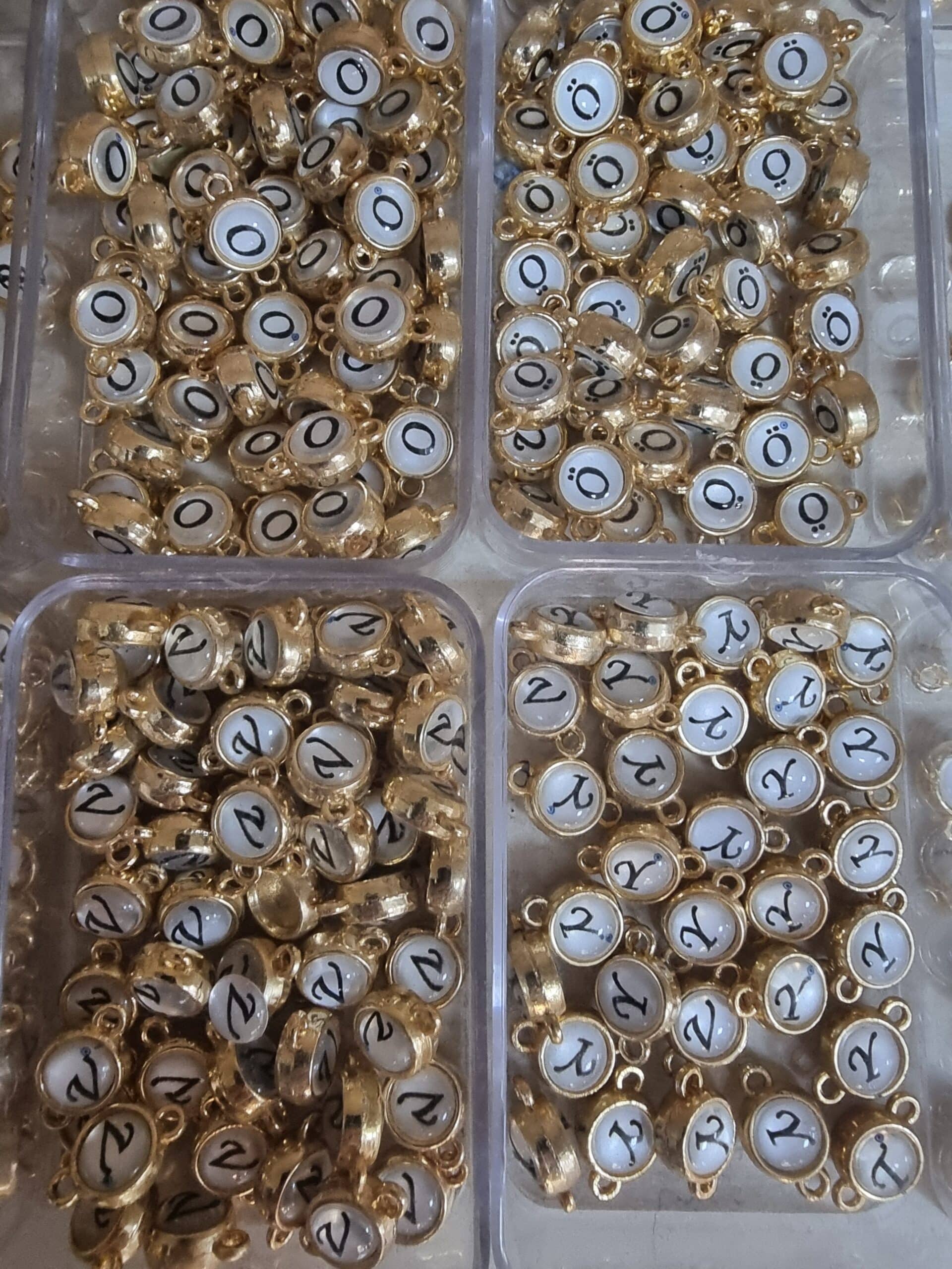 - Altın renkli bileklik harfleri 10 mm çapındadır.