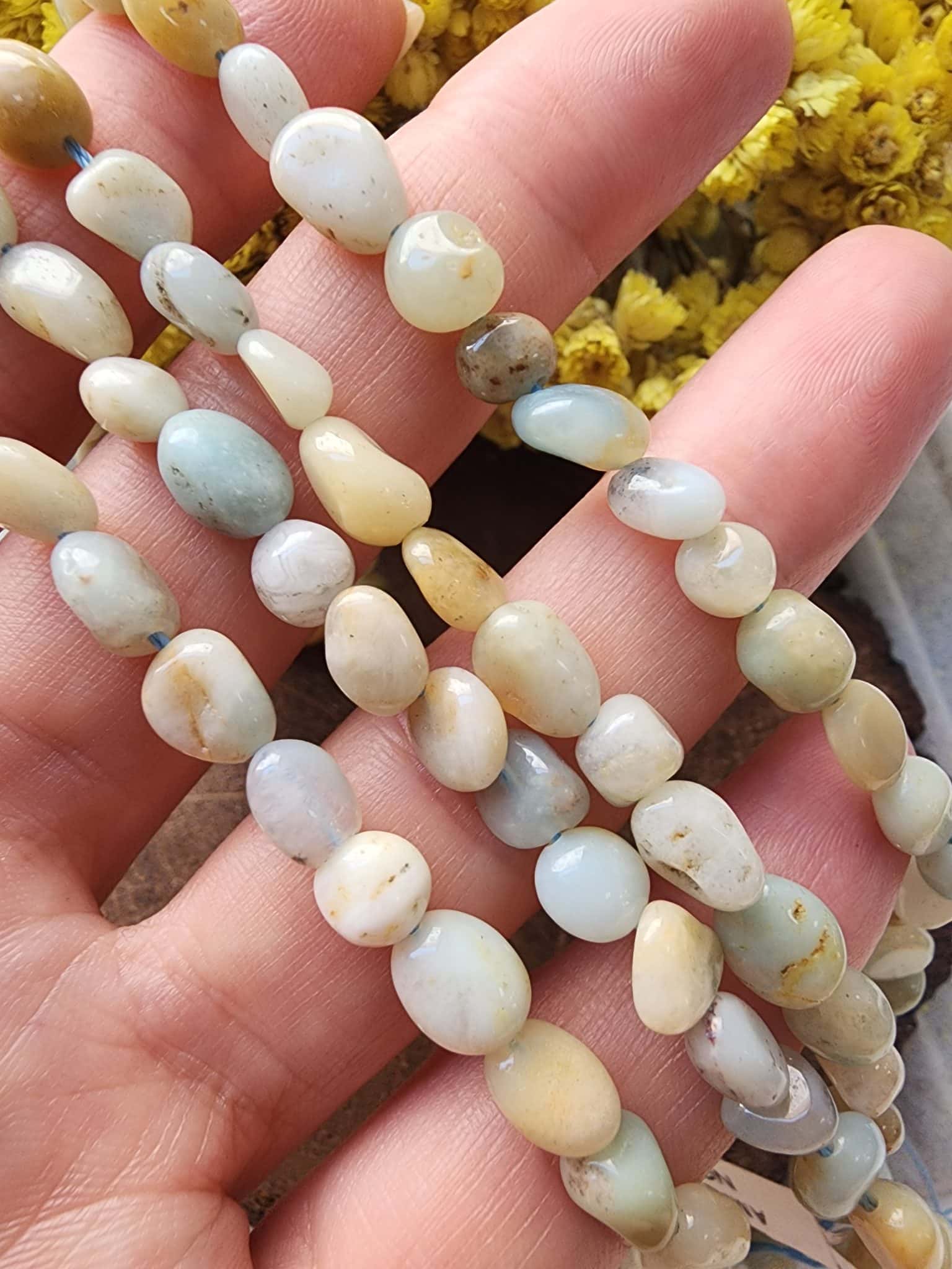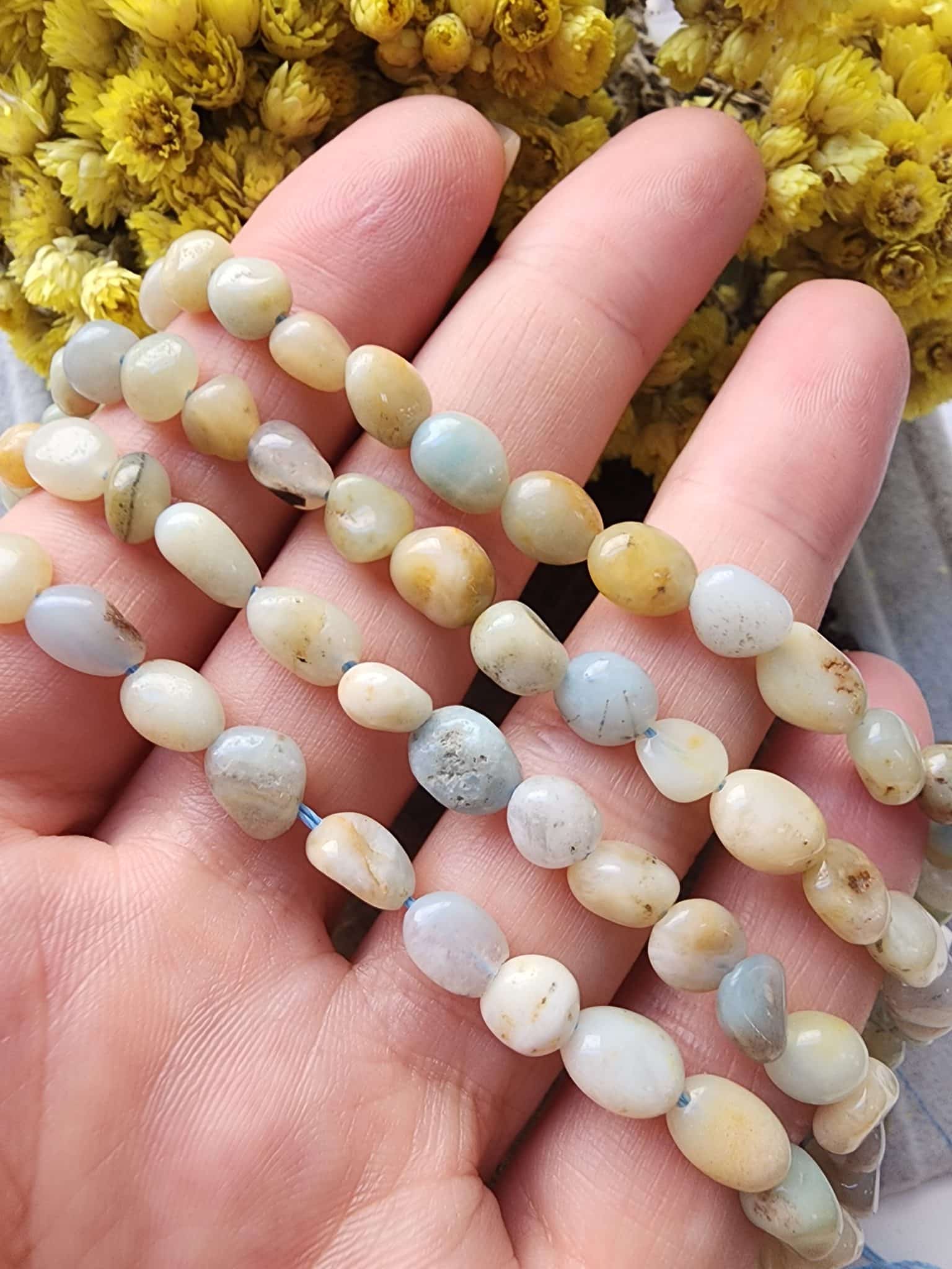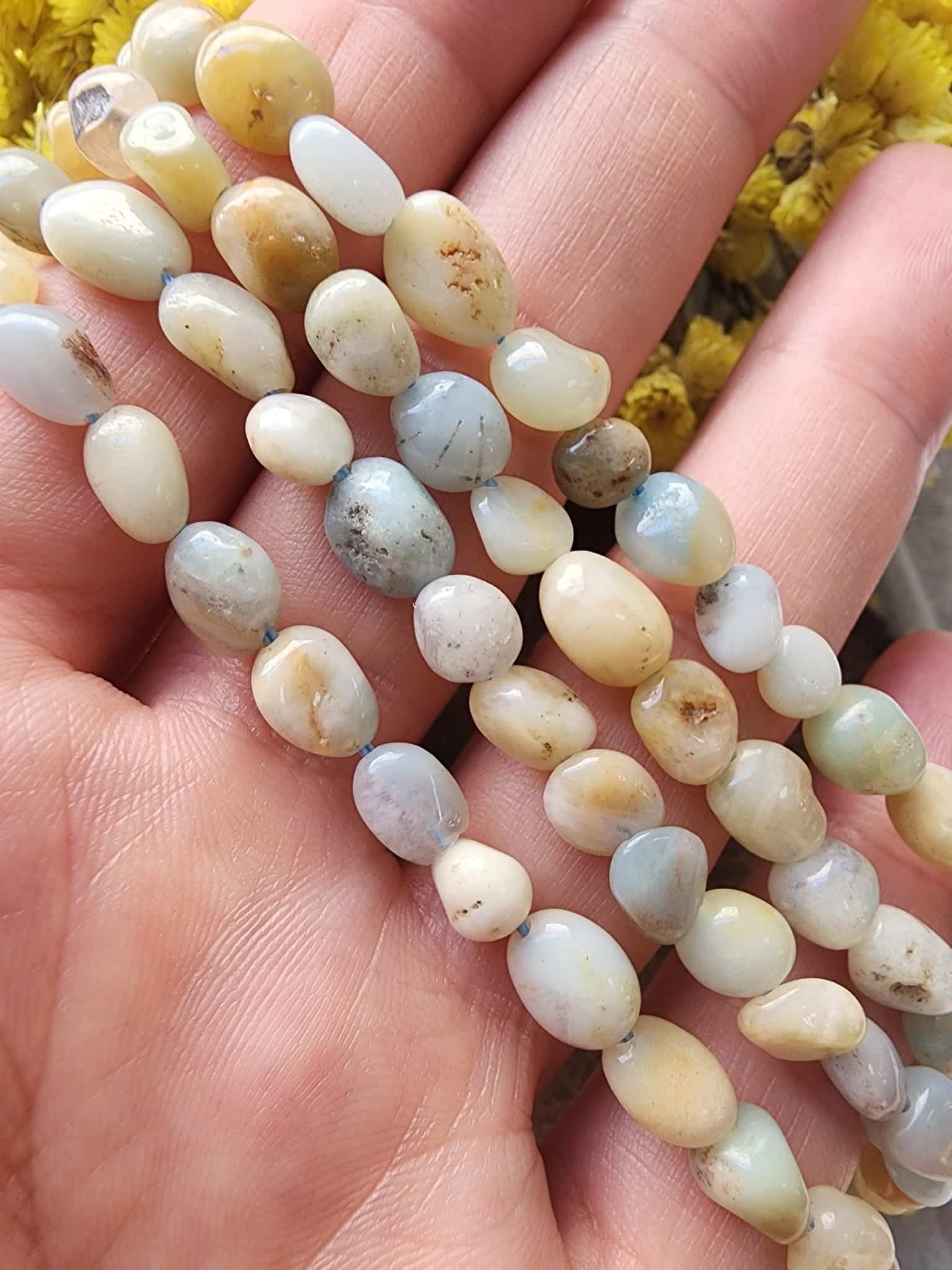- 1 dizi amazonit amorf kesim doğal taş uzunluğu 40 cm dir.