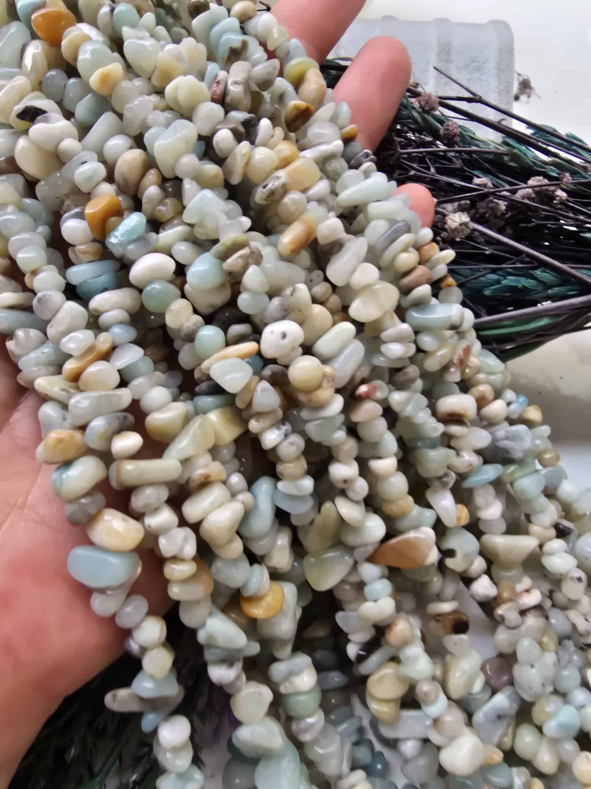 - Amazonit taşlar dizi olarak satılır