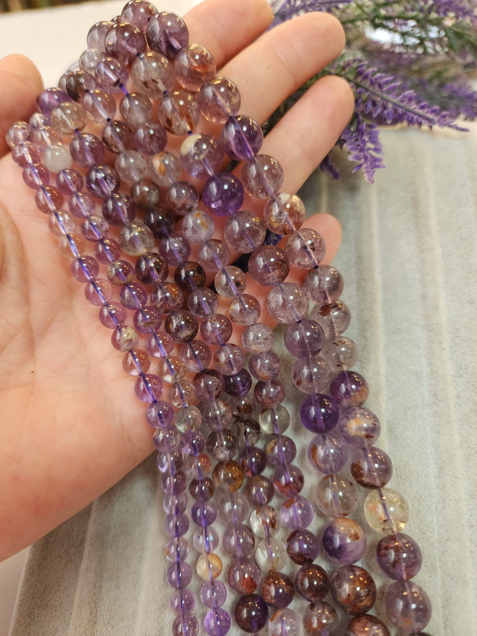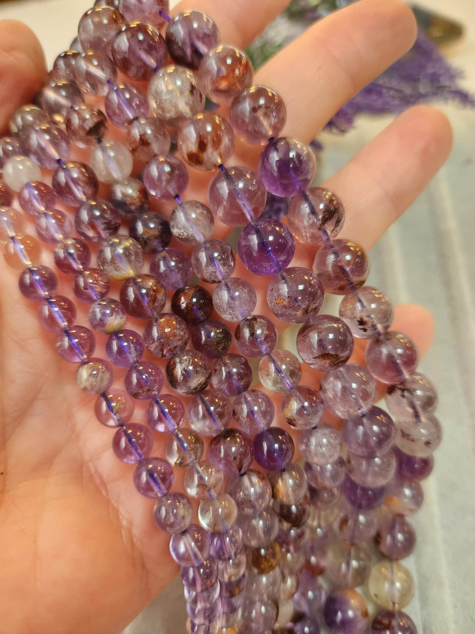 - 1 dizi 8 MM Ametrin Taşında 45-46 Adet Doğal Taş Boncuk Bulunur.