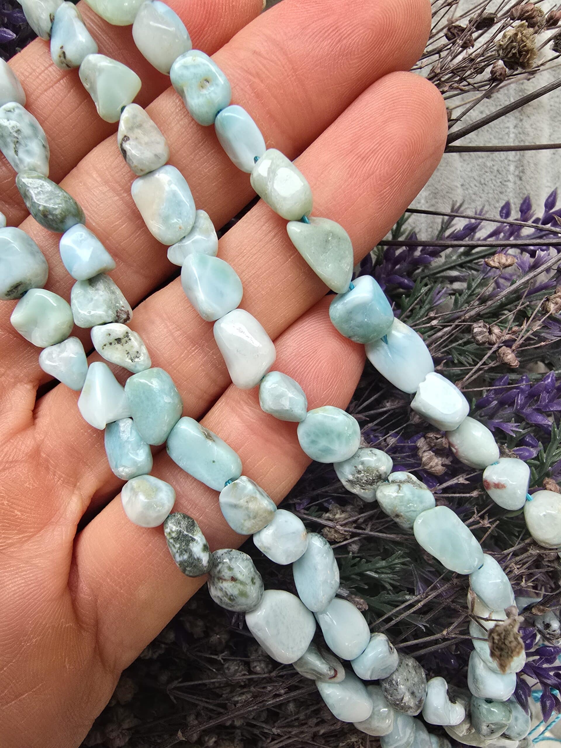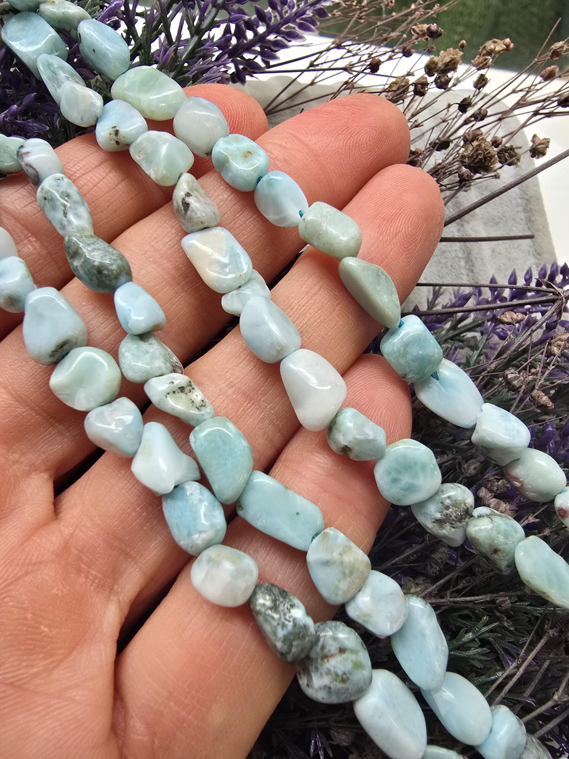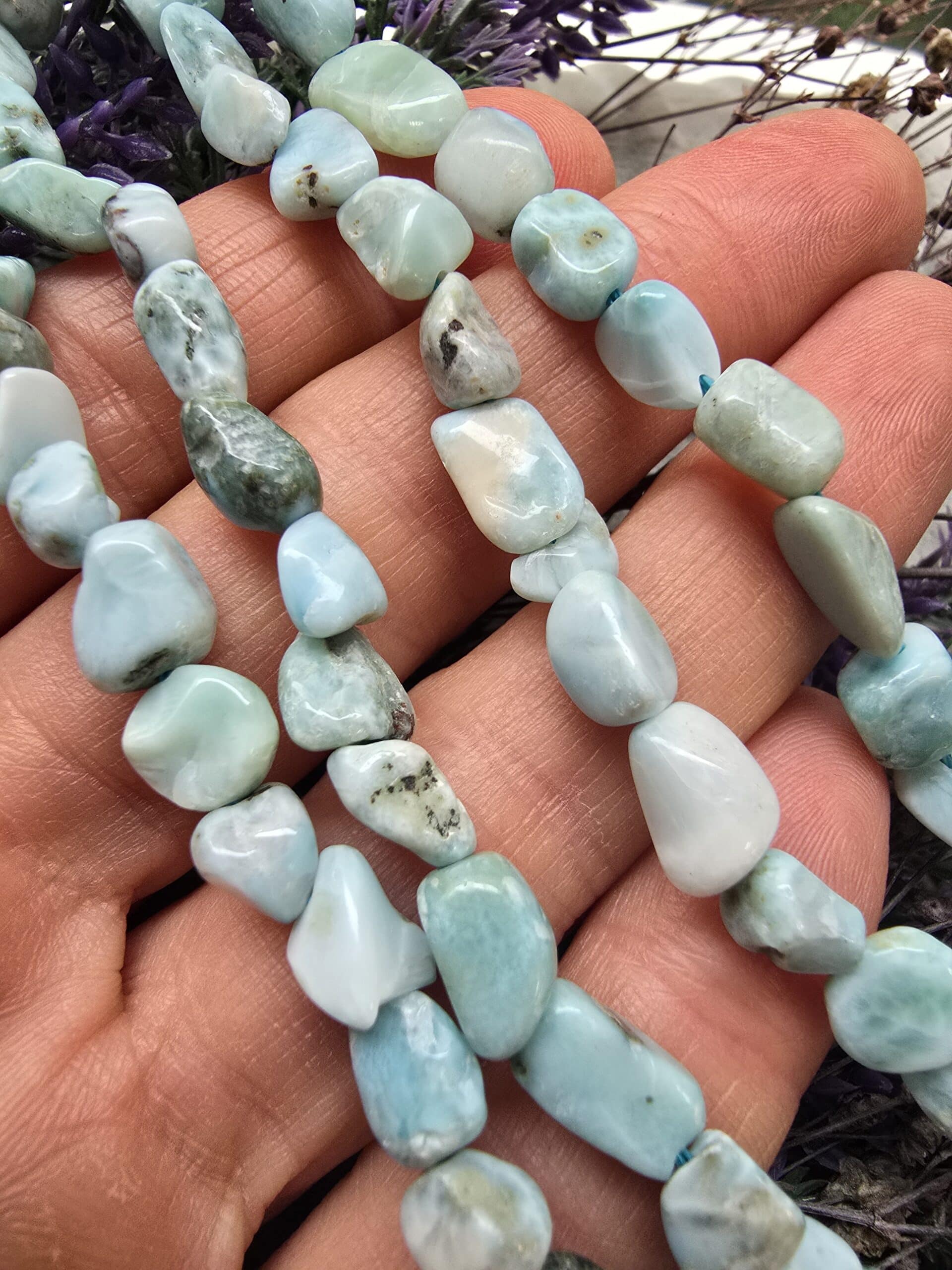 - 1 dizi larimar amorf kesim doğal taş uzunluğu 40 cm dir.