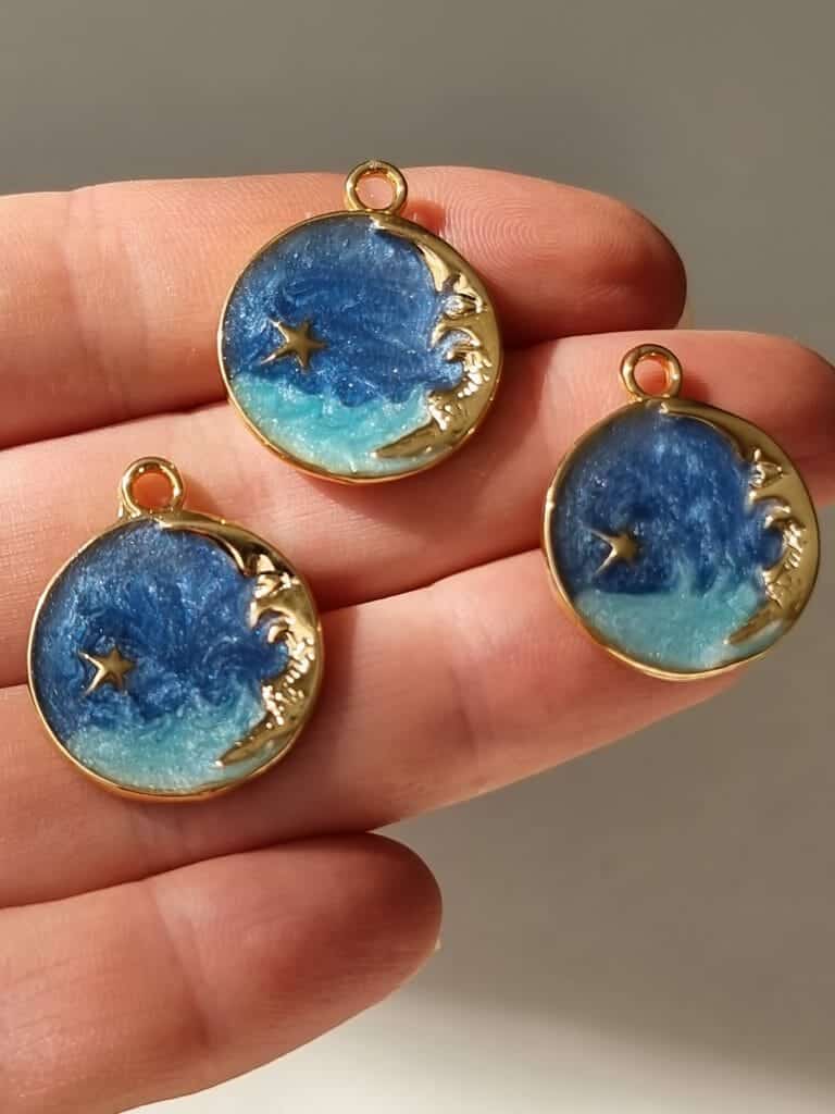 Ay Objeli Sedef Mavi Mine Kolye Ucu :