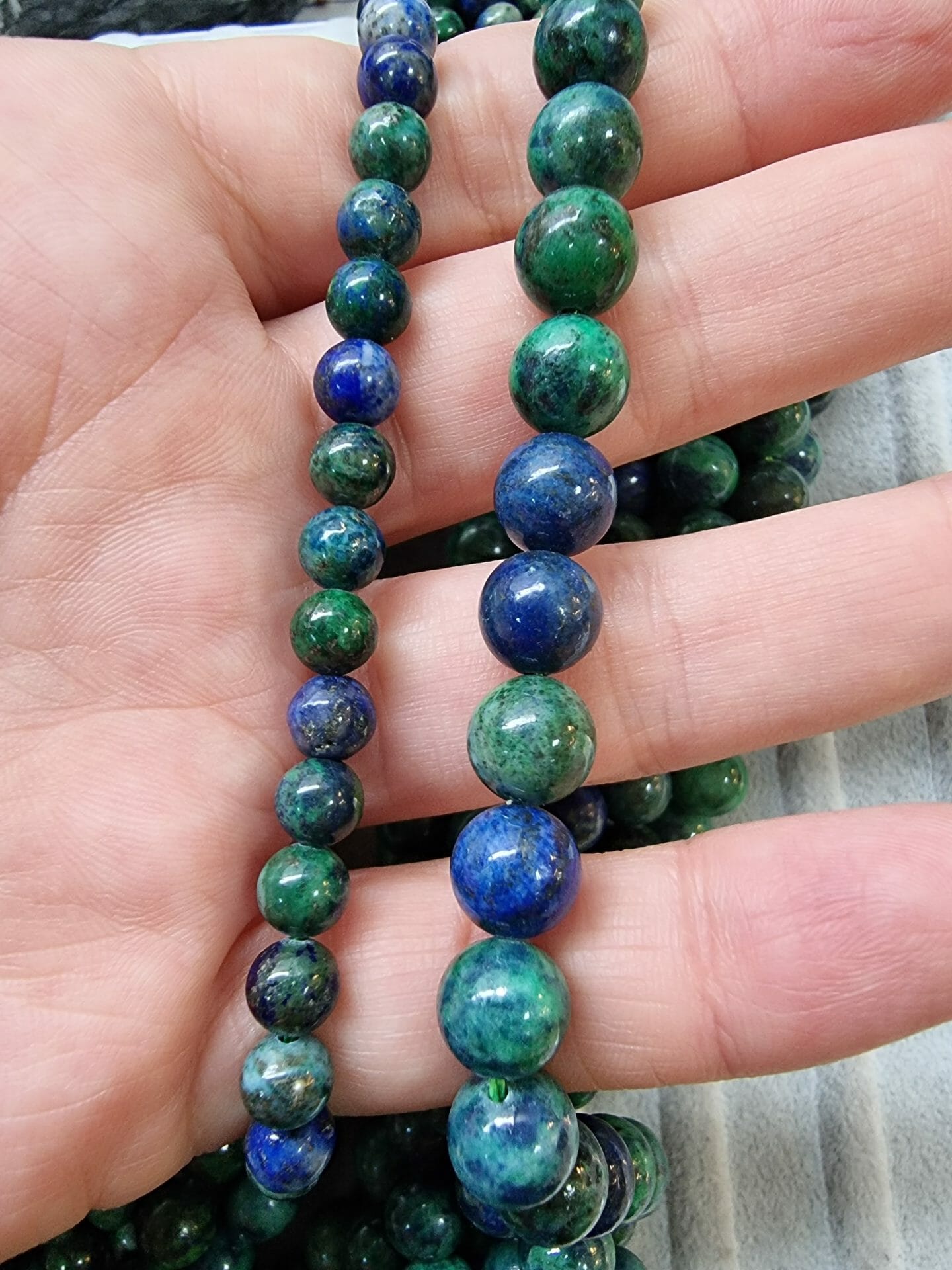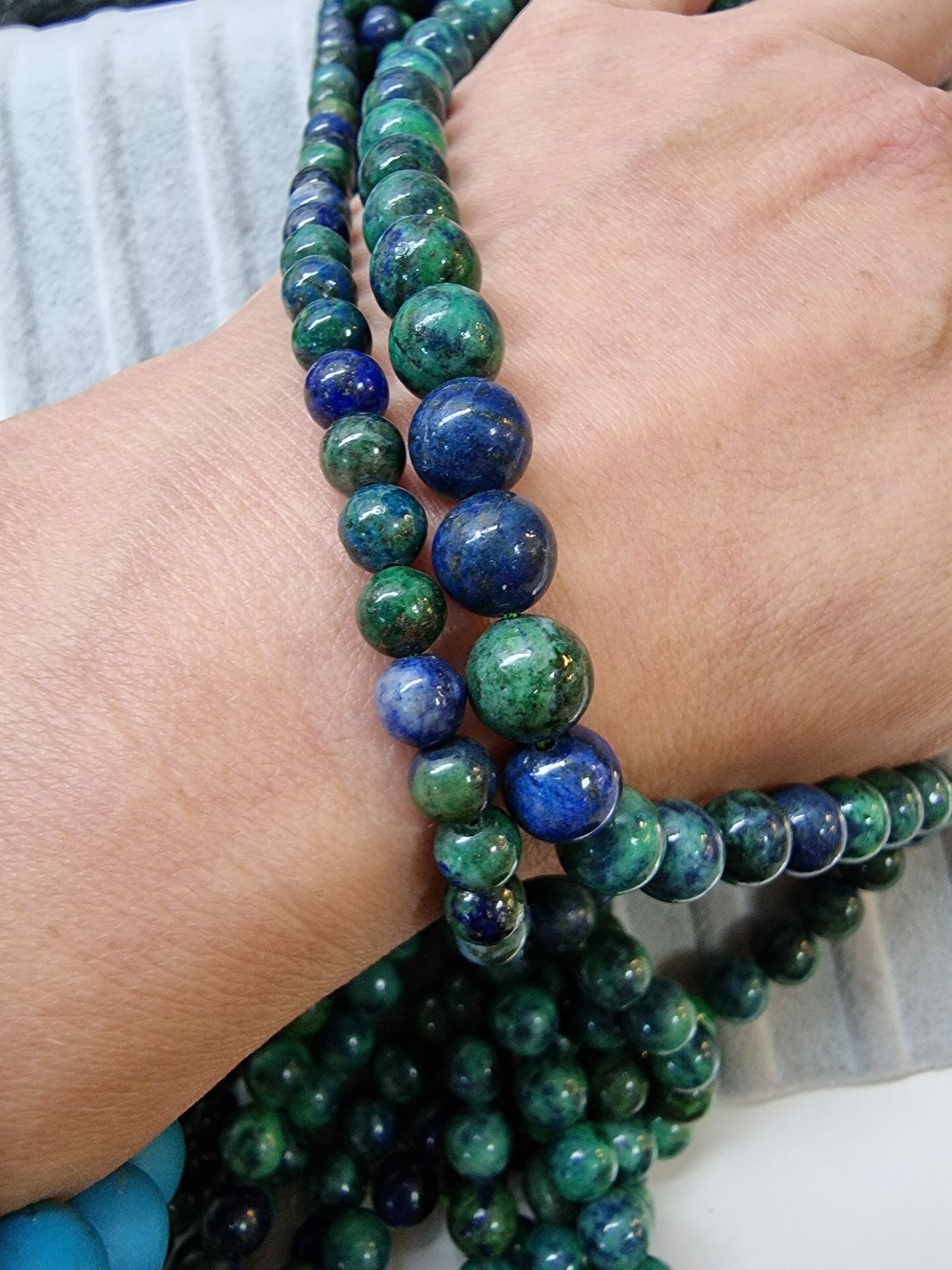 - 1 dizi 10 MM Azurit Taşında 37-38 Adet Doğal Taş Boncuk Bulunur..