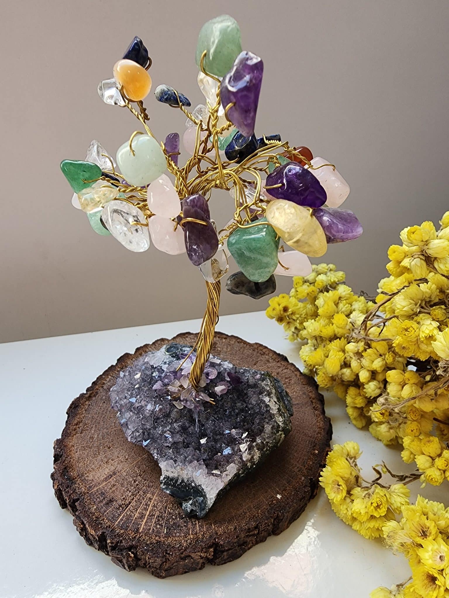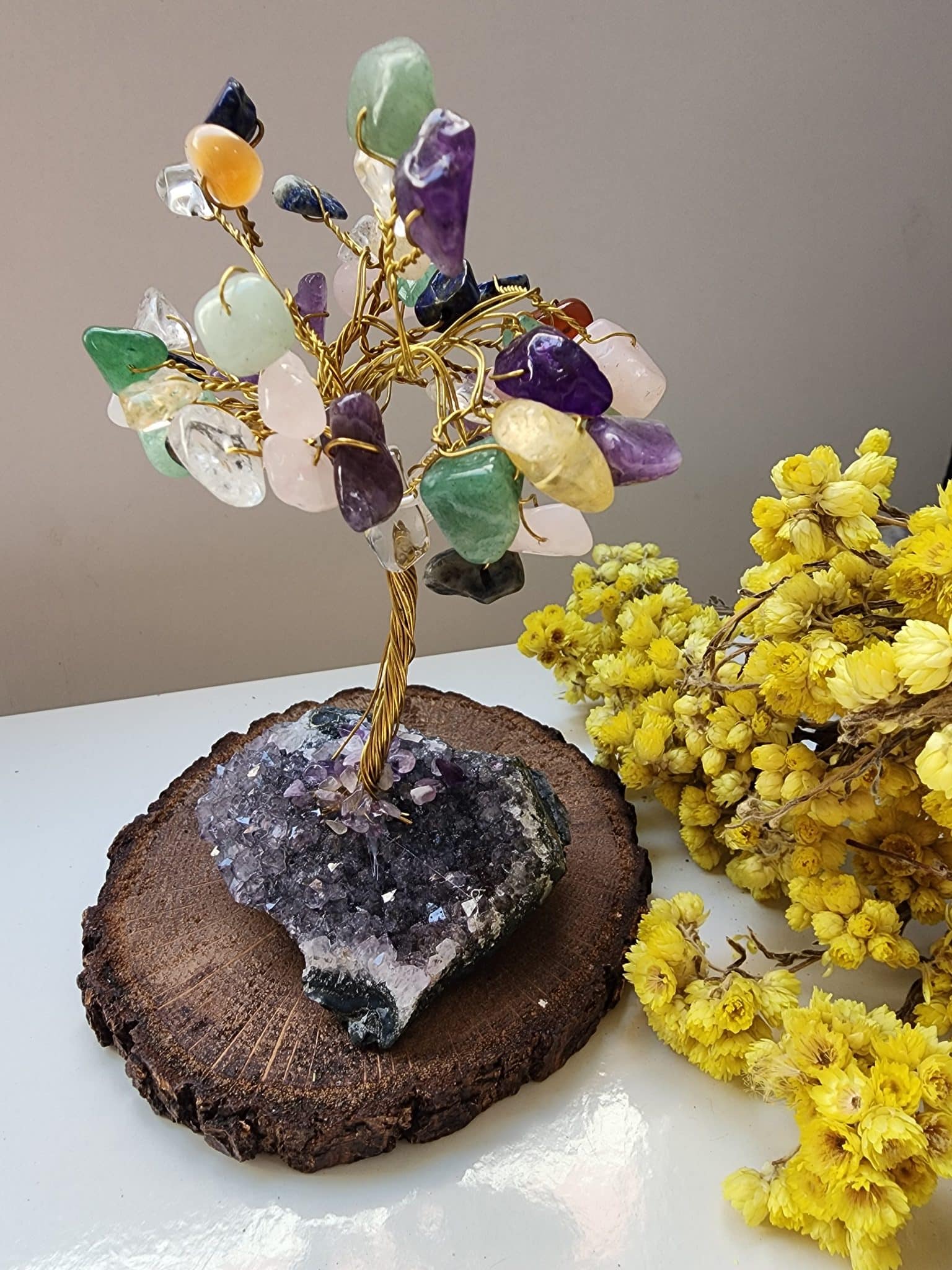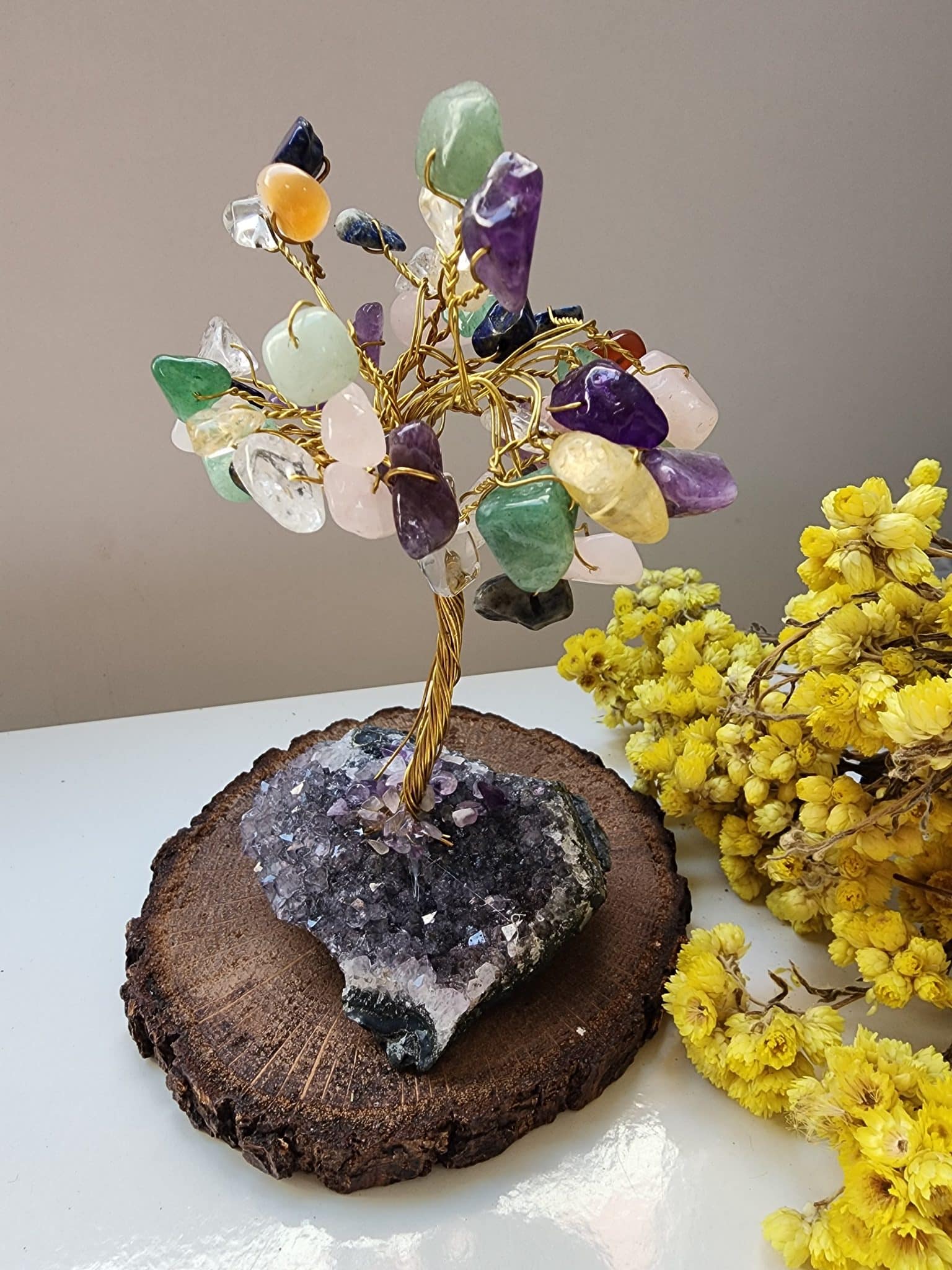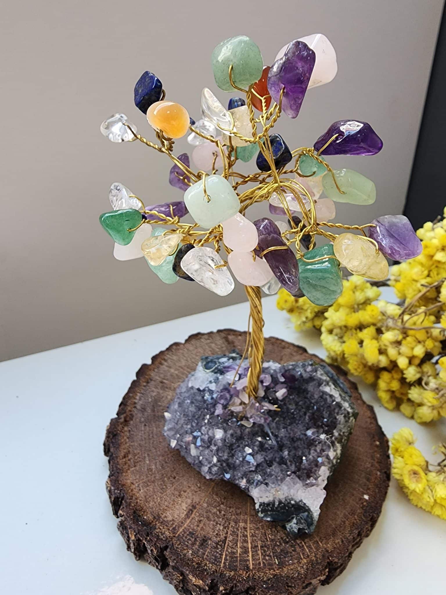 - Ağacın yapımında kullanılan çakra doğal taşlar , doğal taşın damar kesimine bağlı renk ve görünüm değişikliği gösterebilir. Bu tamamen doğal oluşundan dolayıdır.