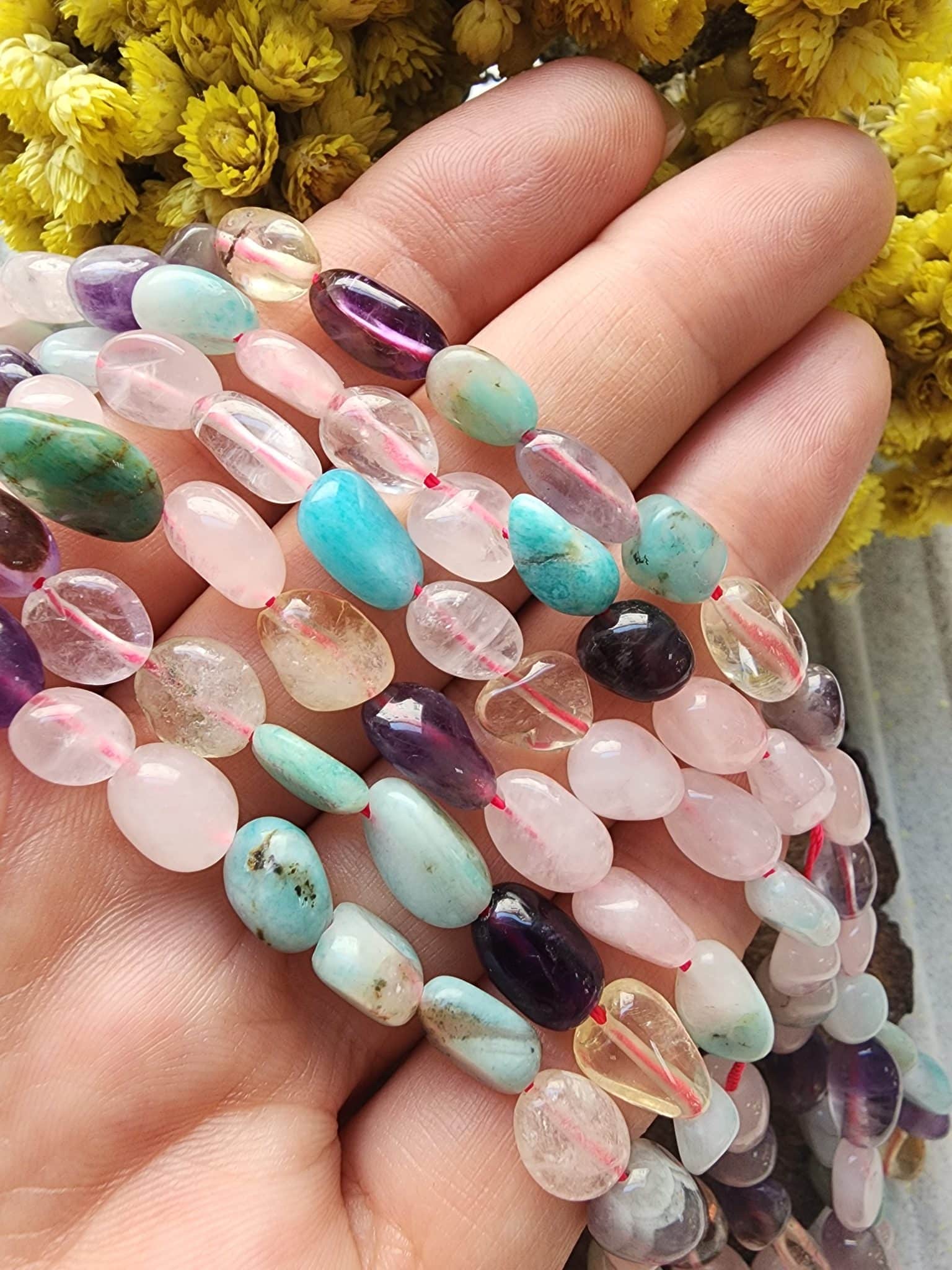 - 1 dizi Çakra amorf kesim doğal taş uzunluğu 40 cm dir.