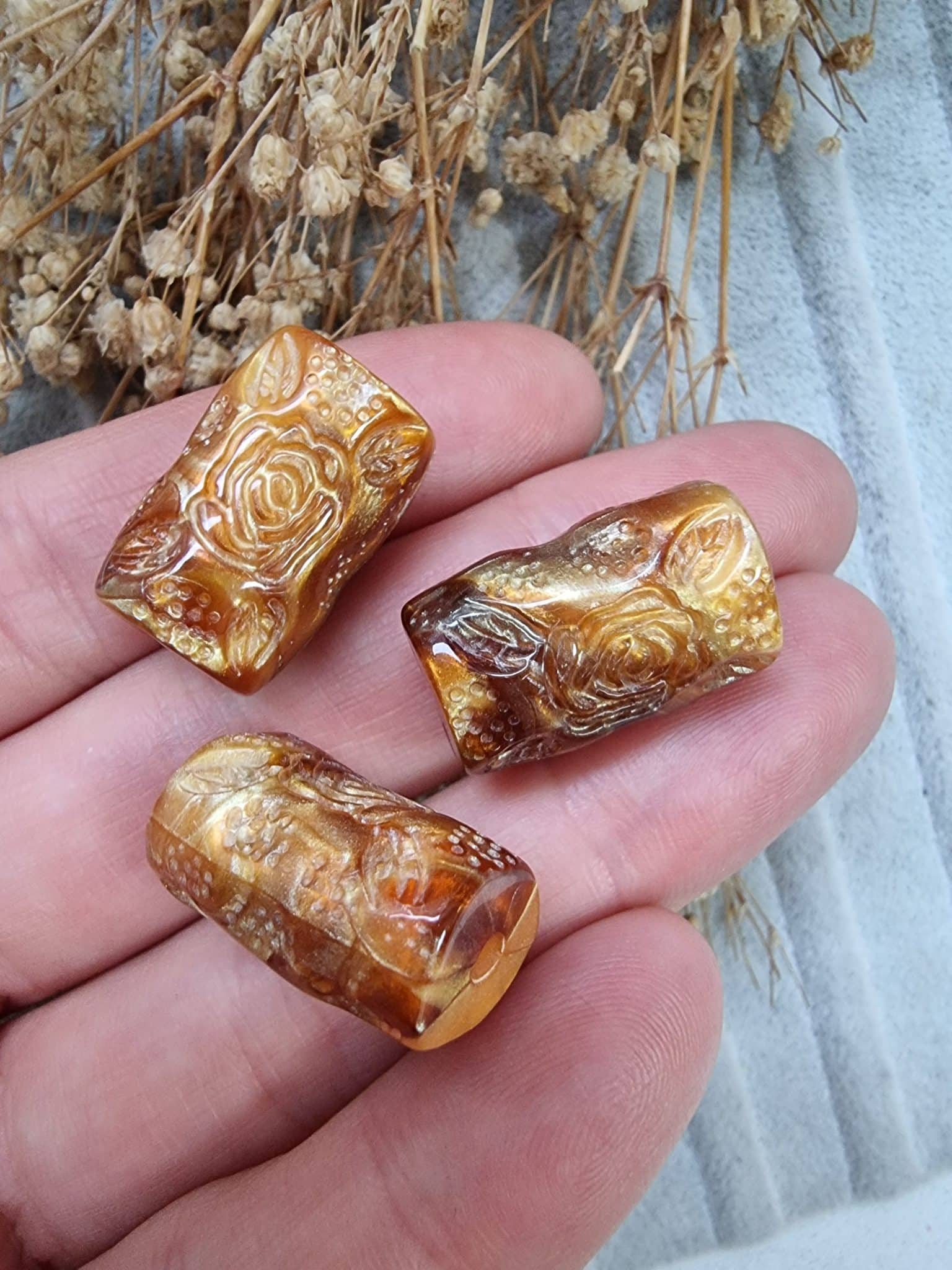 Çiçek Desenli Silindir Akrilik Boncuk