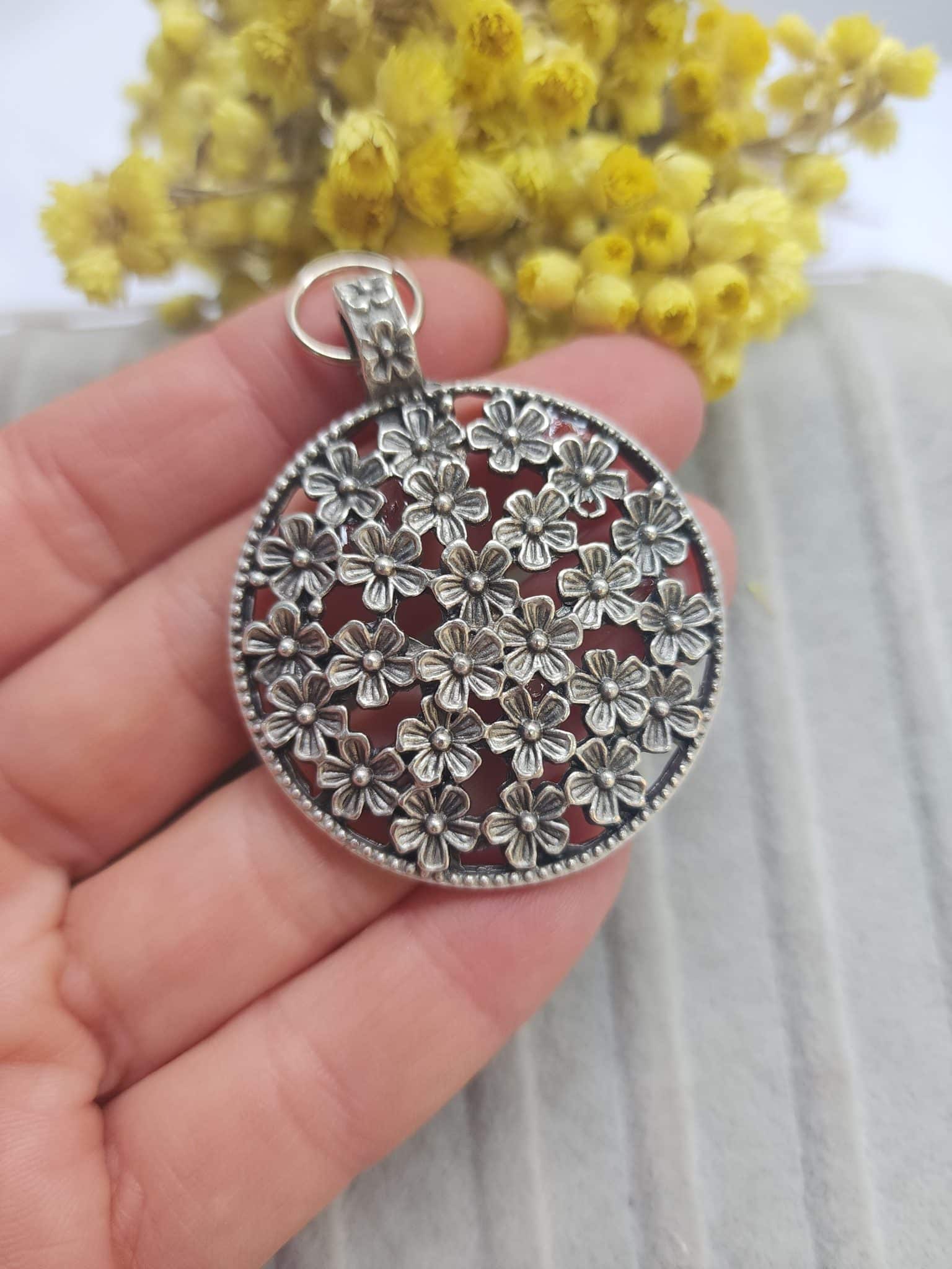 - Çiçekli Madalyon Kolye Ucu Gümüş renktir.