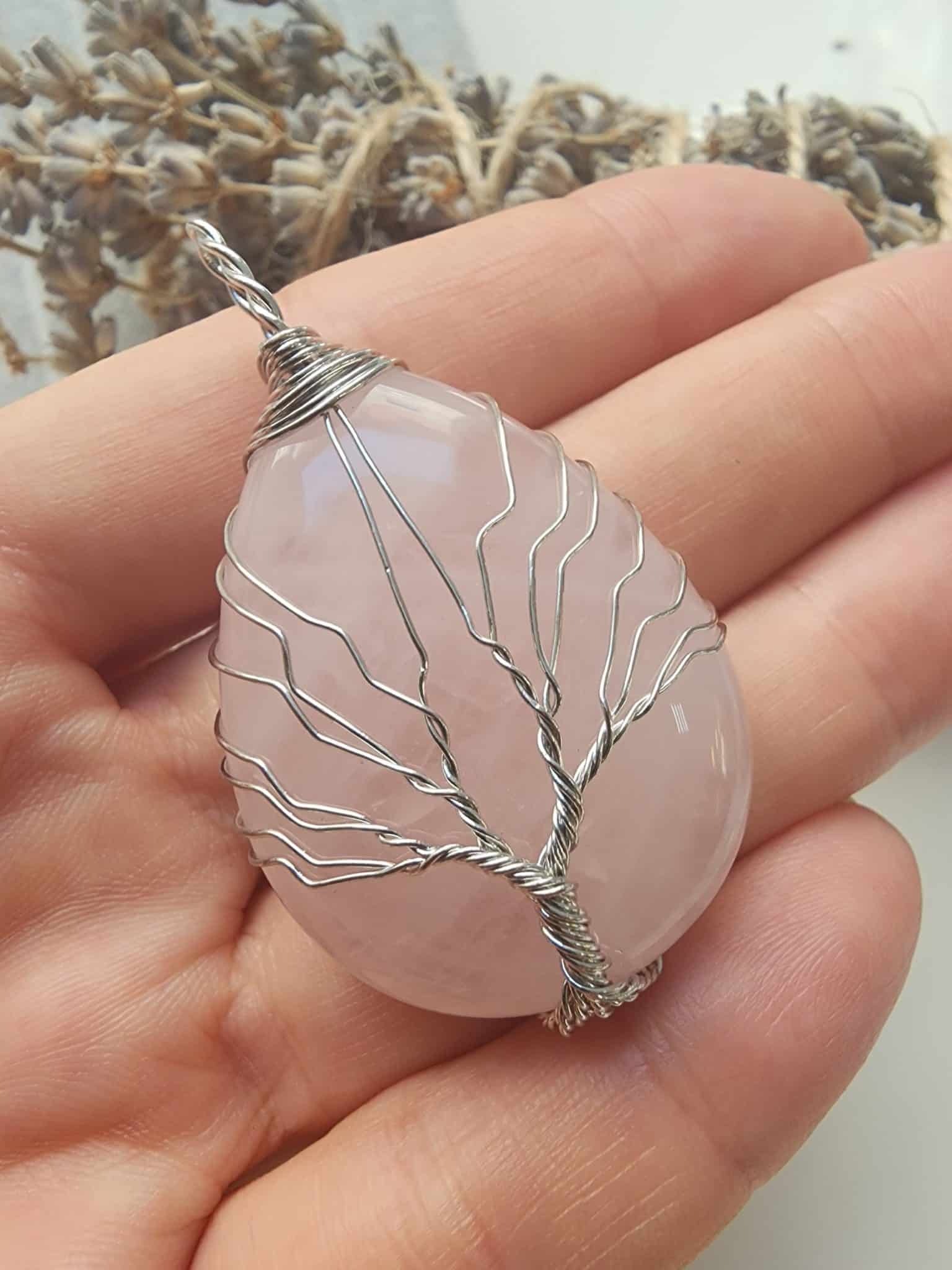 - Damla Ağaç Desenli Pembe Kuvars Taşı Kolye Ucu ağırlığı 7 gram.