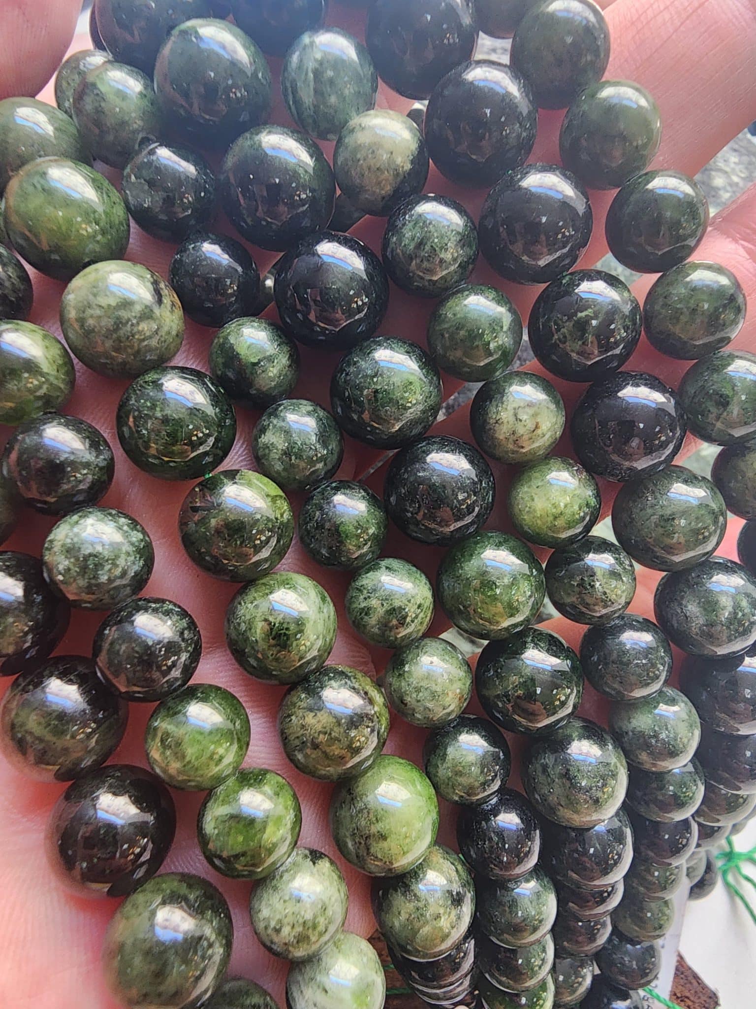 - 1 dizi 10 MM Diopside Taşında 37-38 Adet Doğal Taş Boncuk Bulunur..