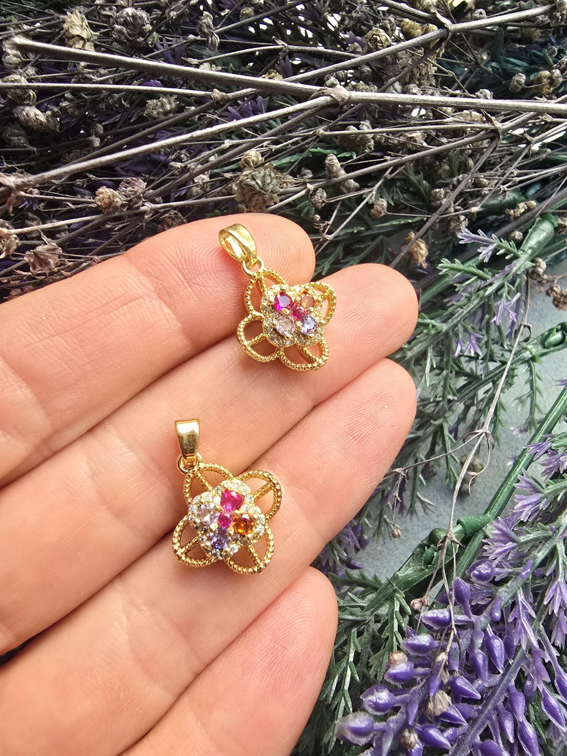 Dönerli Renkli Taşlı Çark Çiçek Kolye Ucu