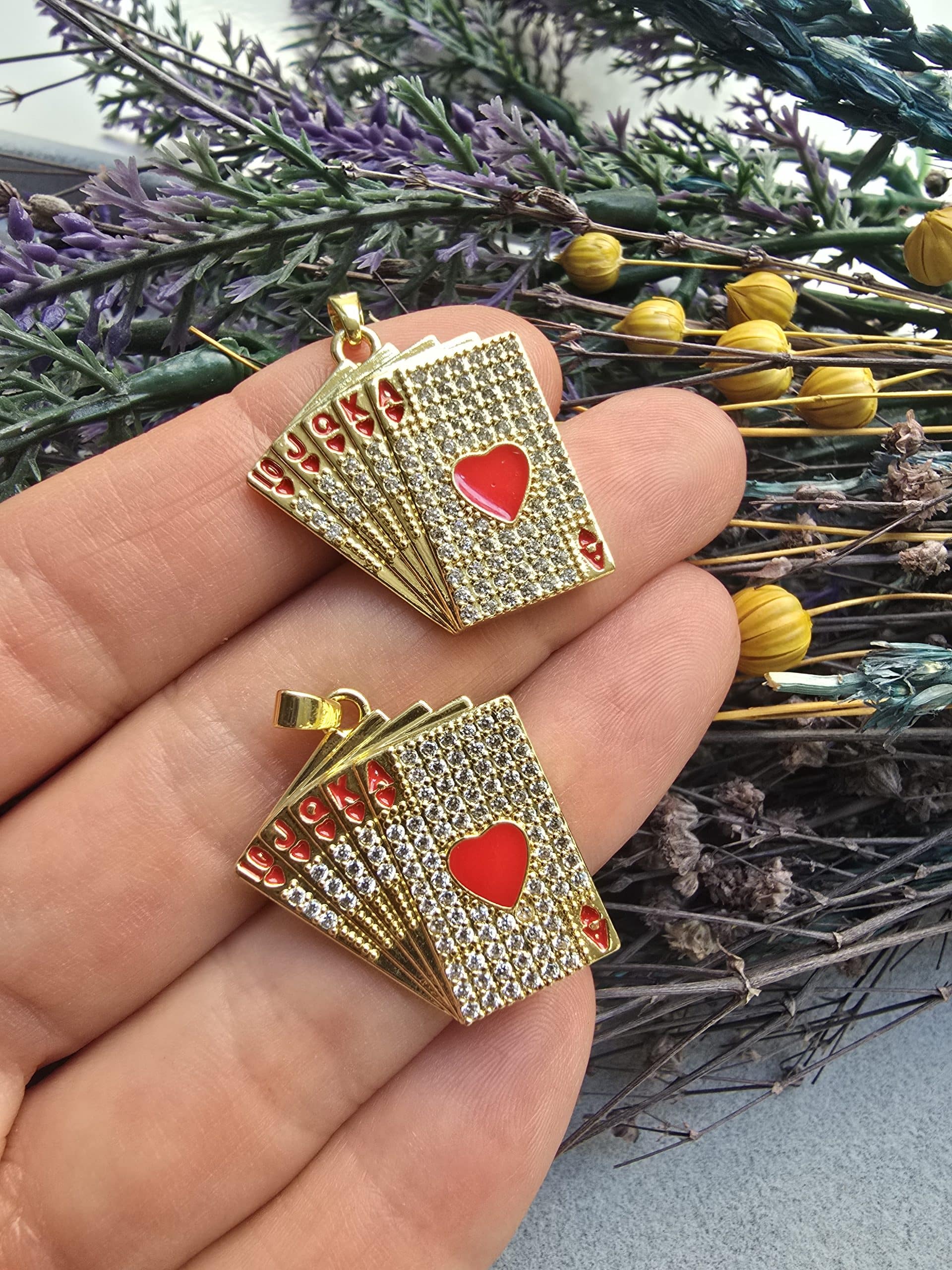 Floş Royal Poker Destesi Zirkon Taşlı Charm