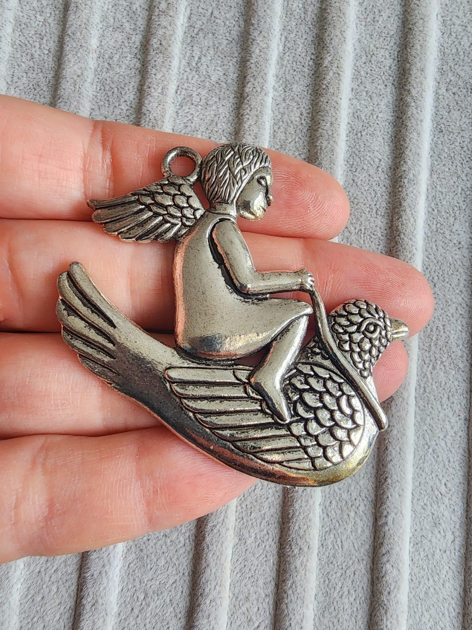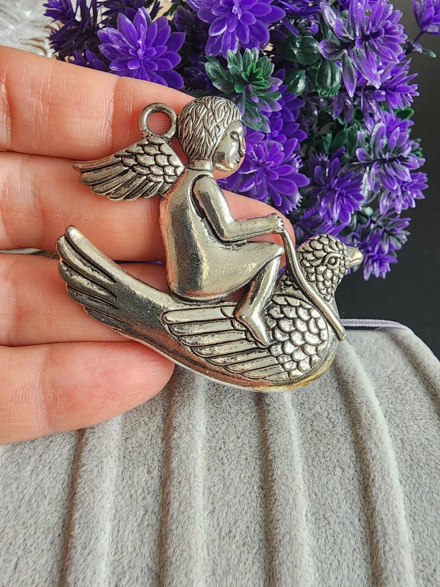 - Güvercinli Melek Döküm Kolye Ucu gümüş kaplamadır.