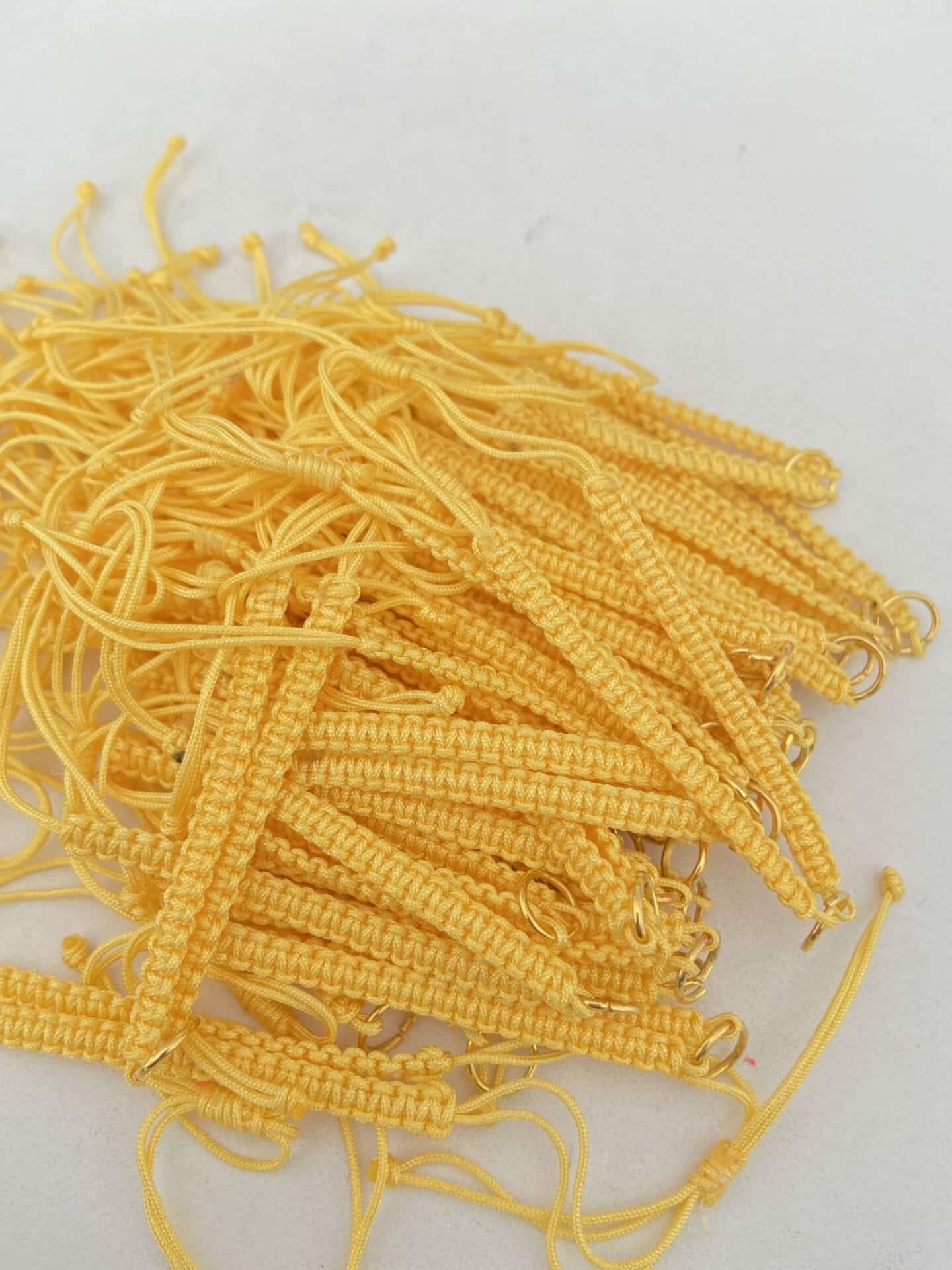 Hazır bileklik ipleri elde örülerek yapılır.