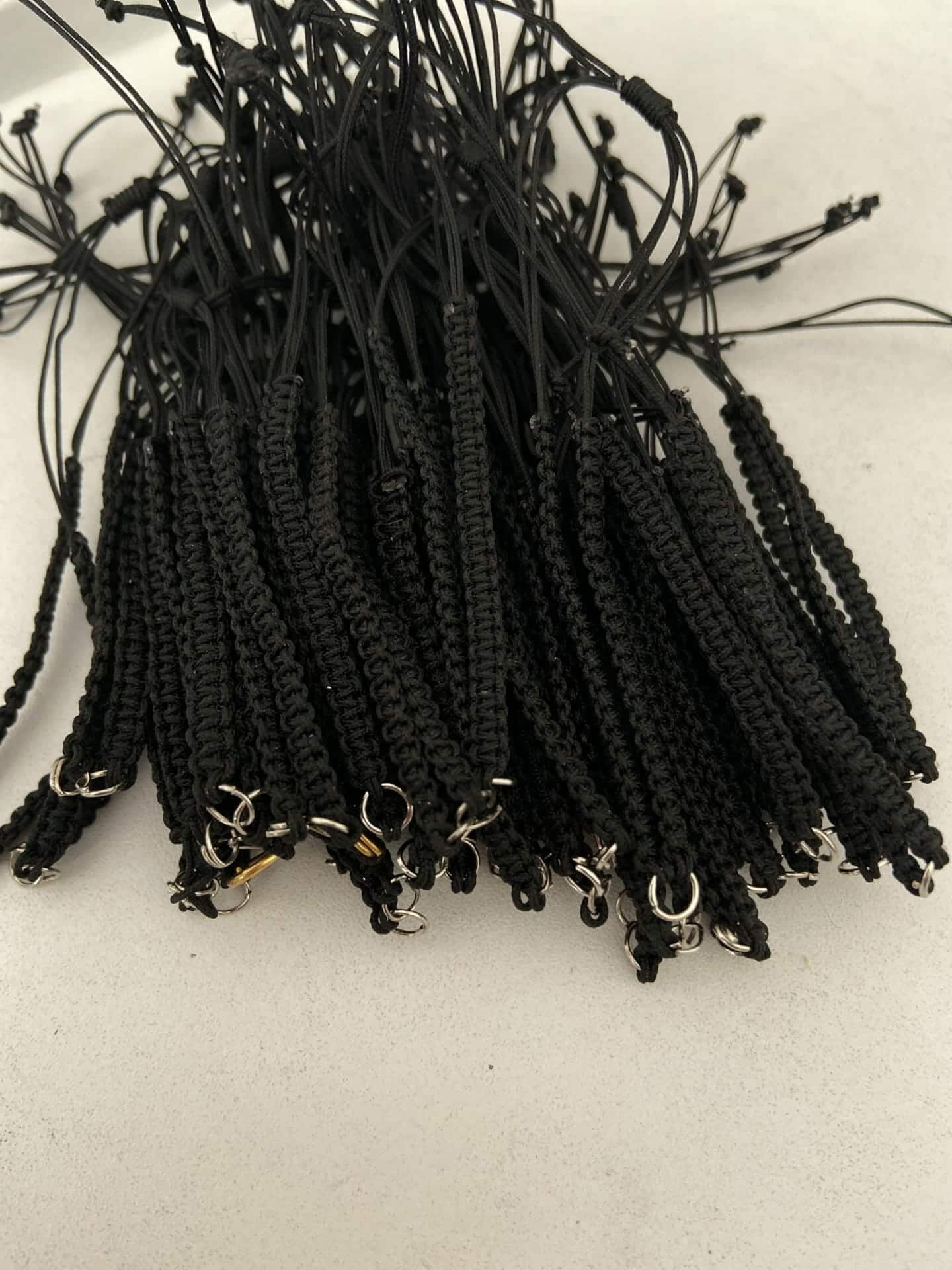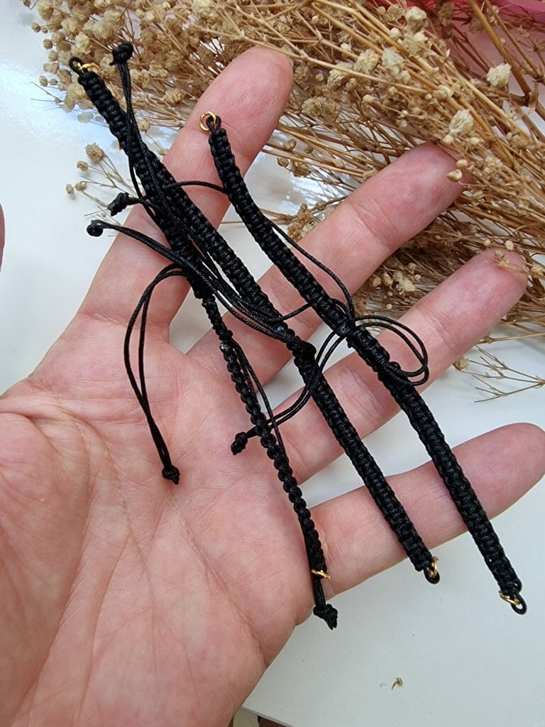 Hazır bileklik ipleri elde örülerek yapılır.
