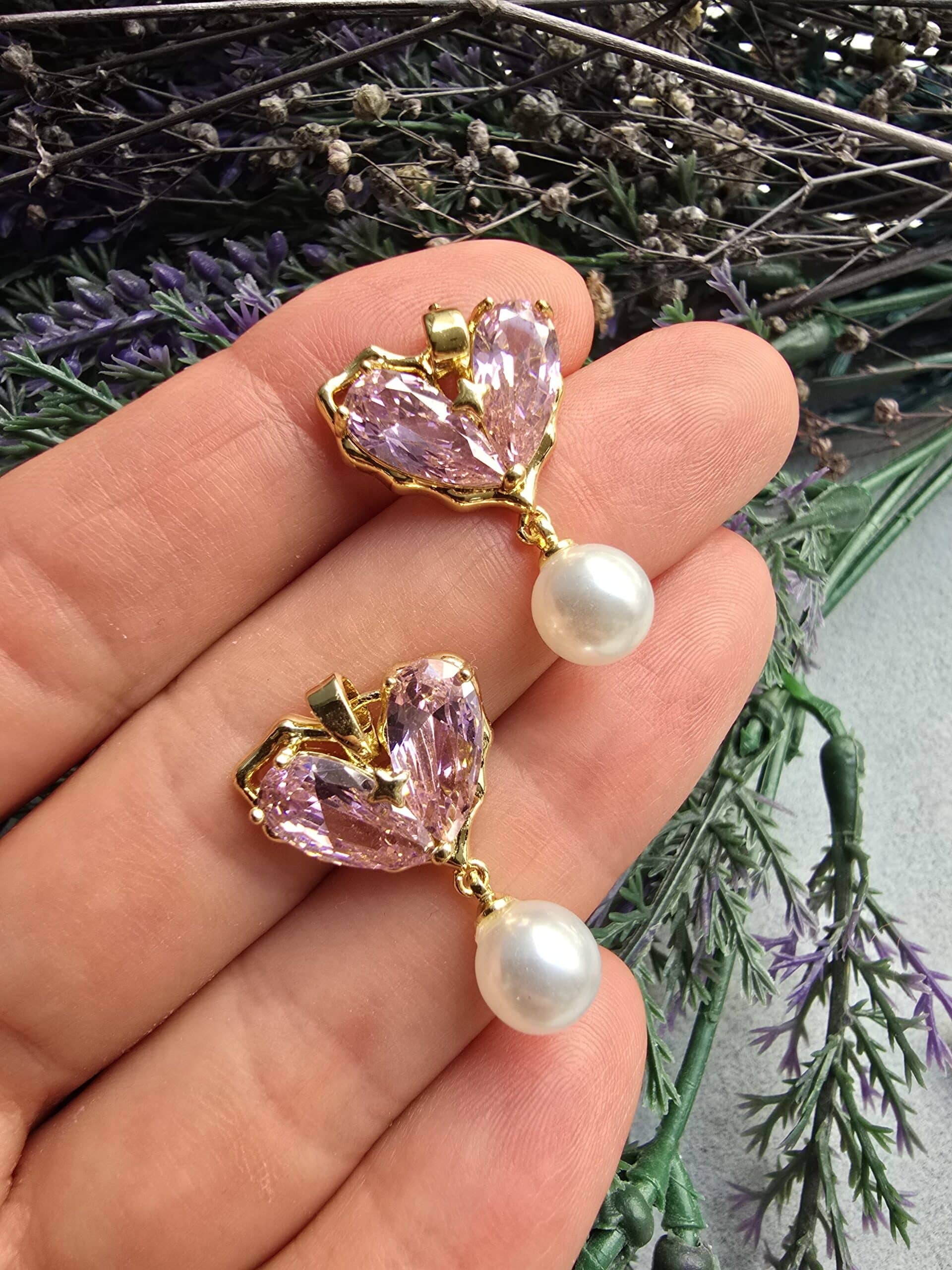 İnci Sallantılı Zirkon Taşlı Kalp Kolye Ucu
