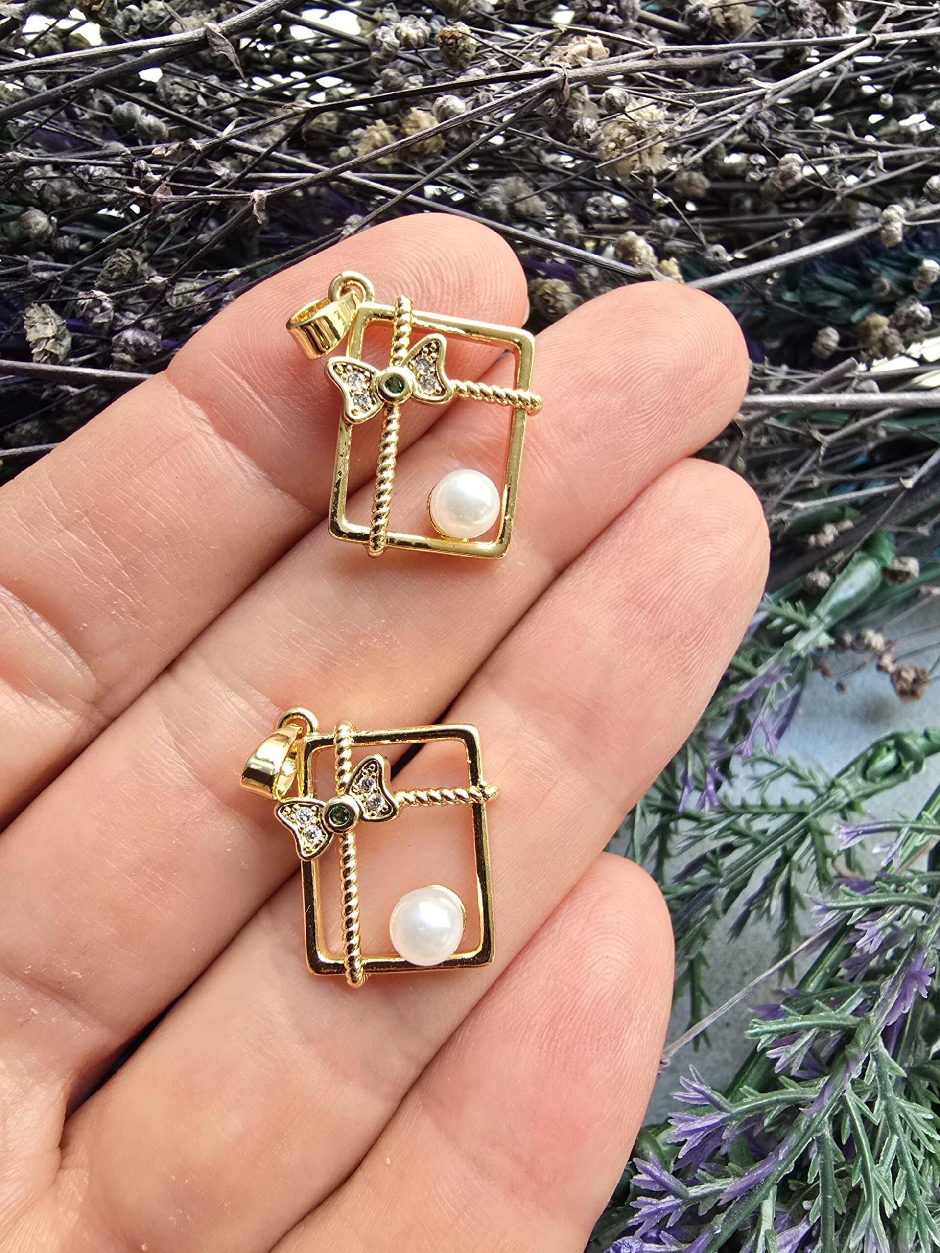 İnci ve Fiyonk Çerçeve Kolye Ucu