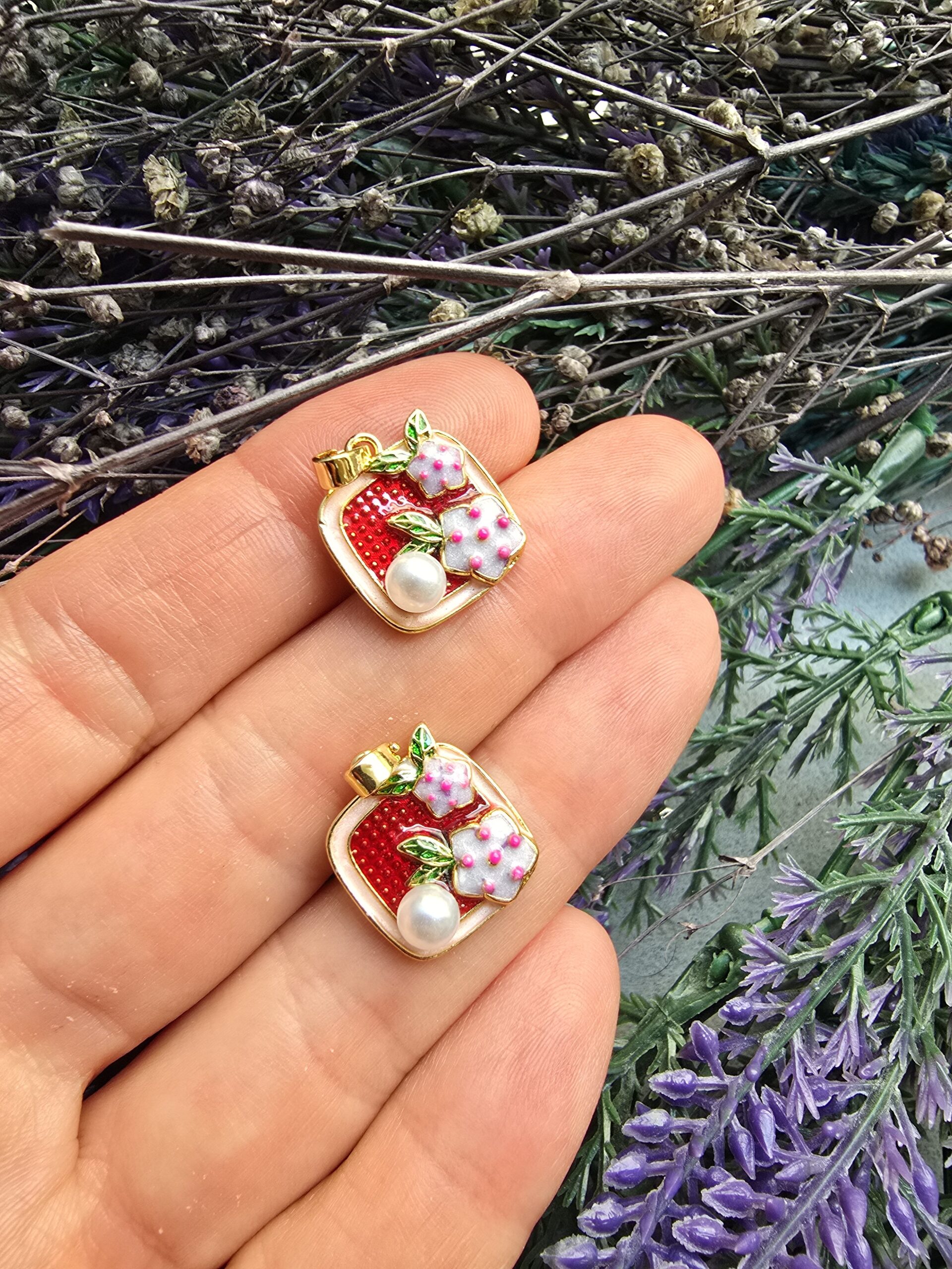 İncili Çiçek Kırmızı Mineli Kolye Ucu