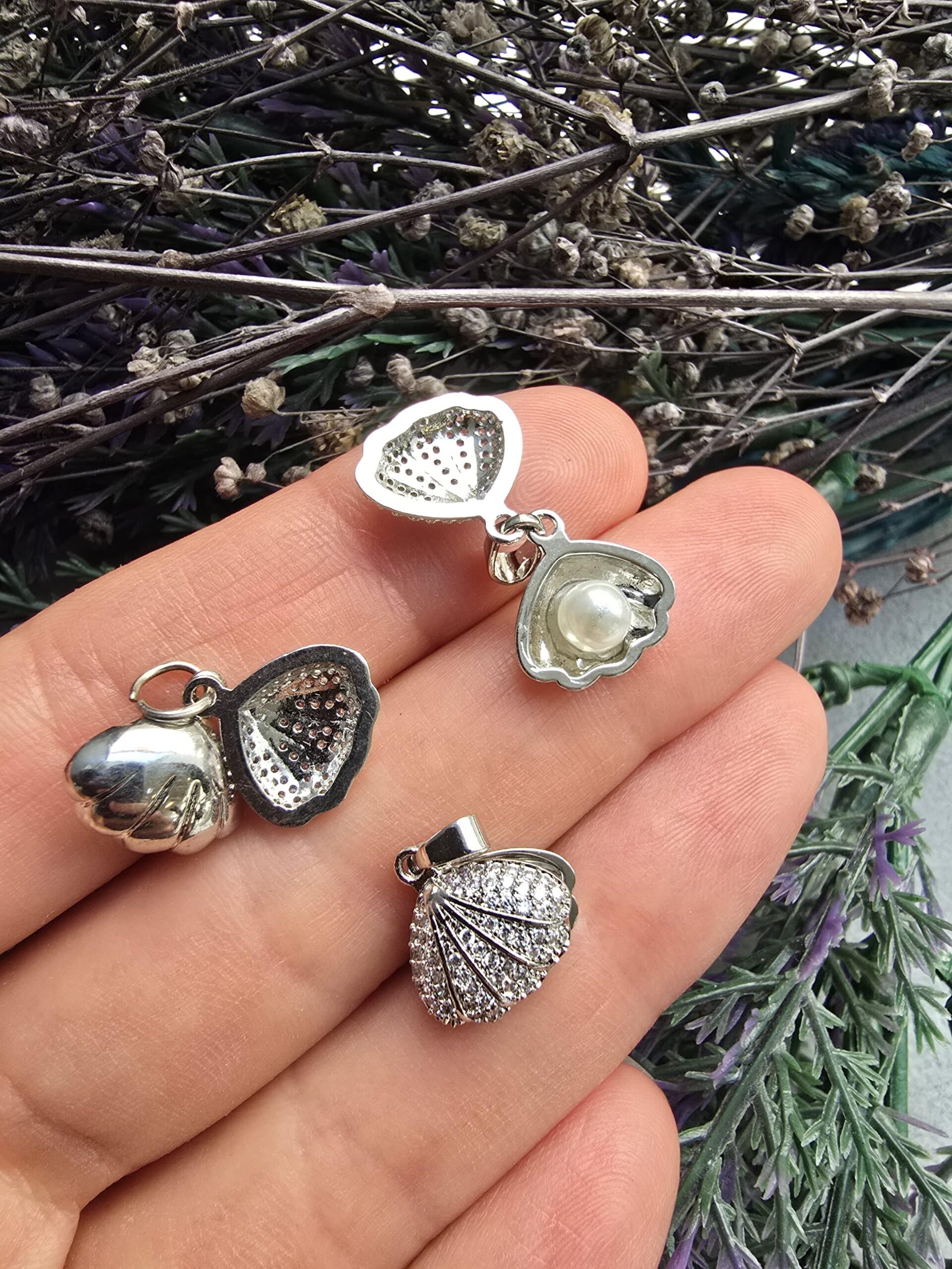 İncili Çift İstiridye Silver Charm Kolye Ucu
