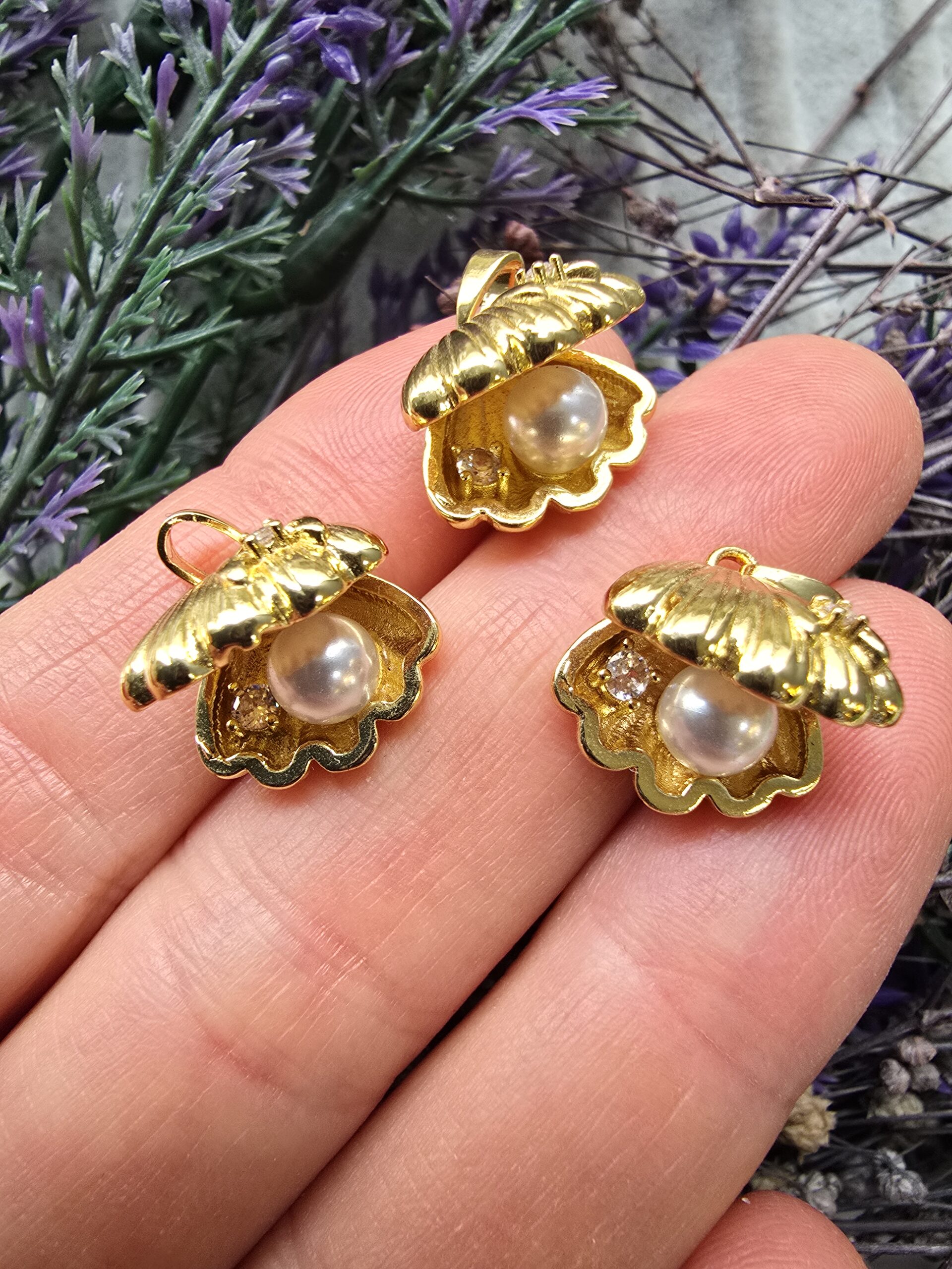 İncili İstiridye Zirkon Taşlı Charm