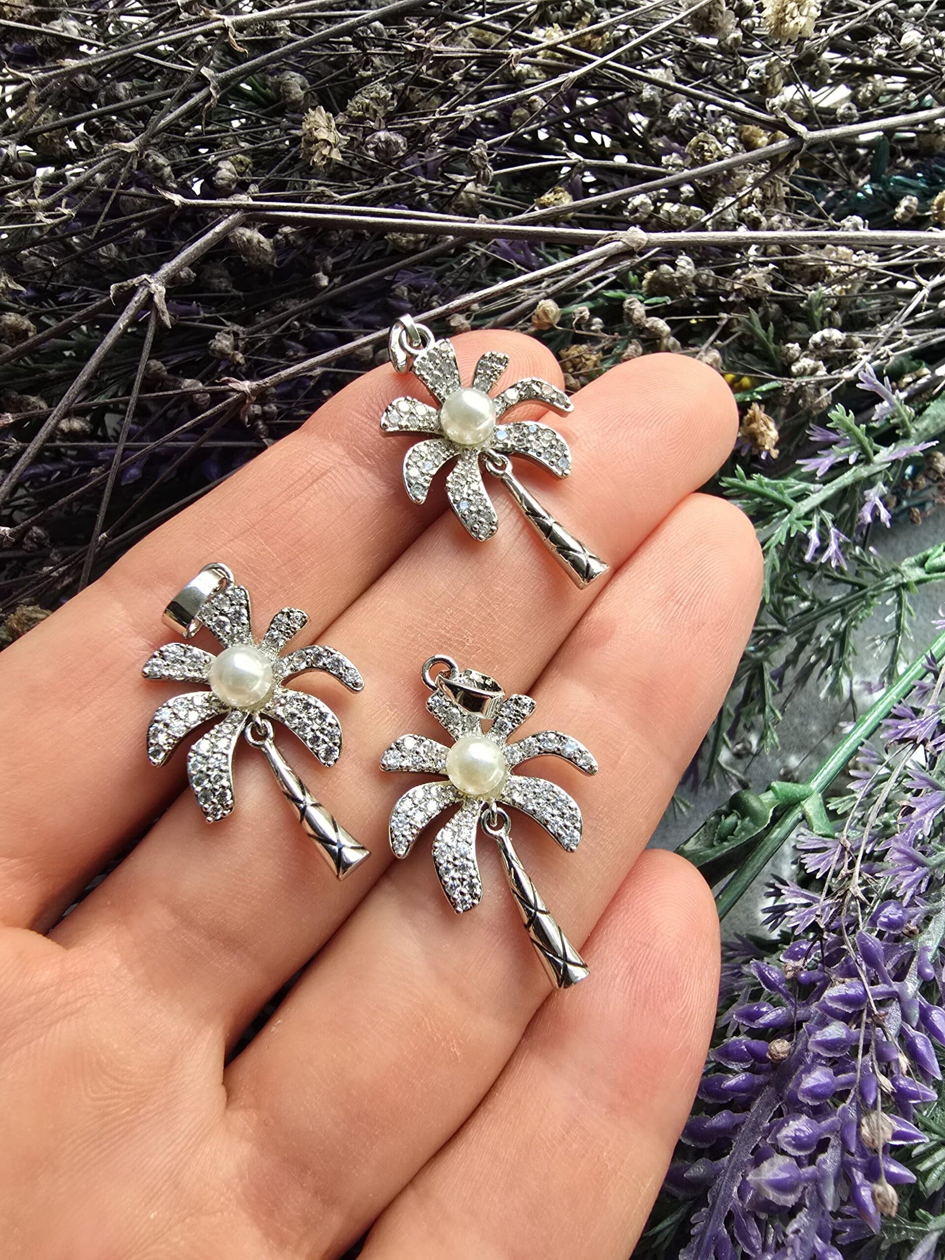 İncili Palmiye Yaprağı Charm Kolye Ucu