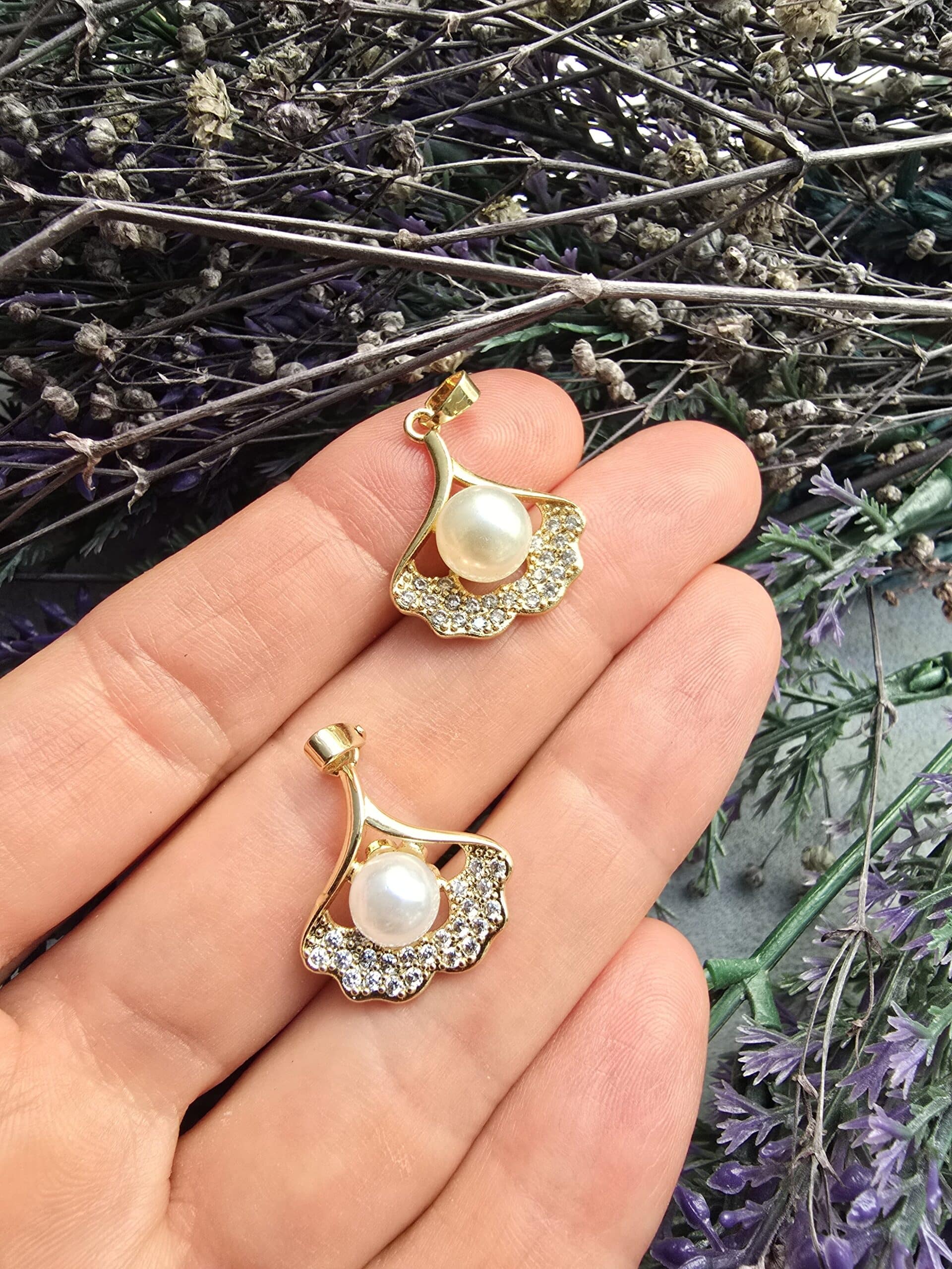 İncili Yelpaze Charm Kolye Ucu