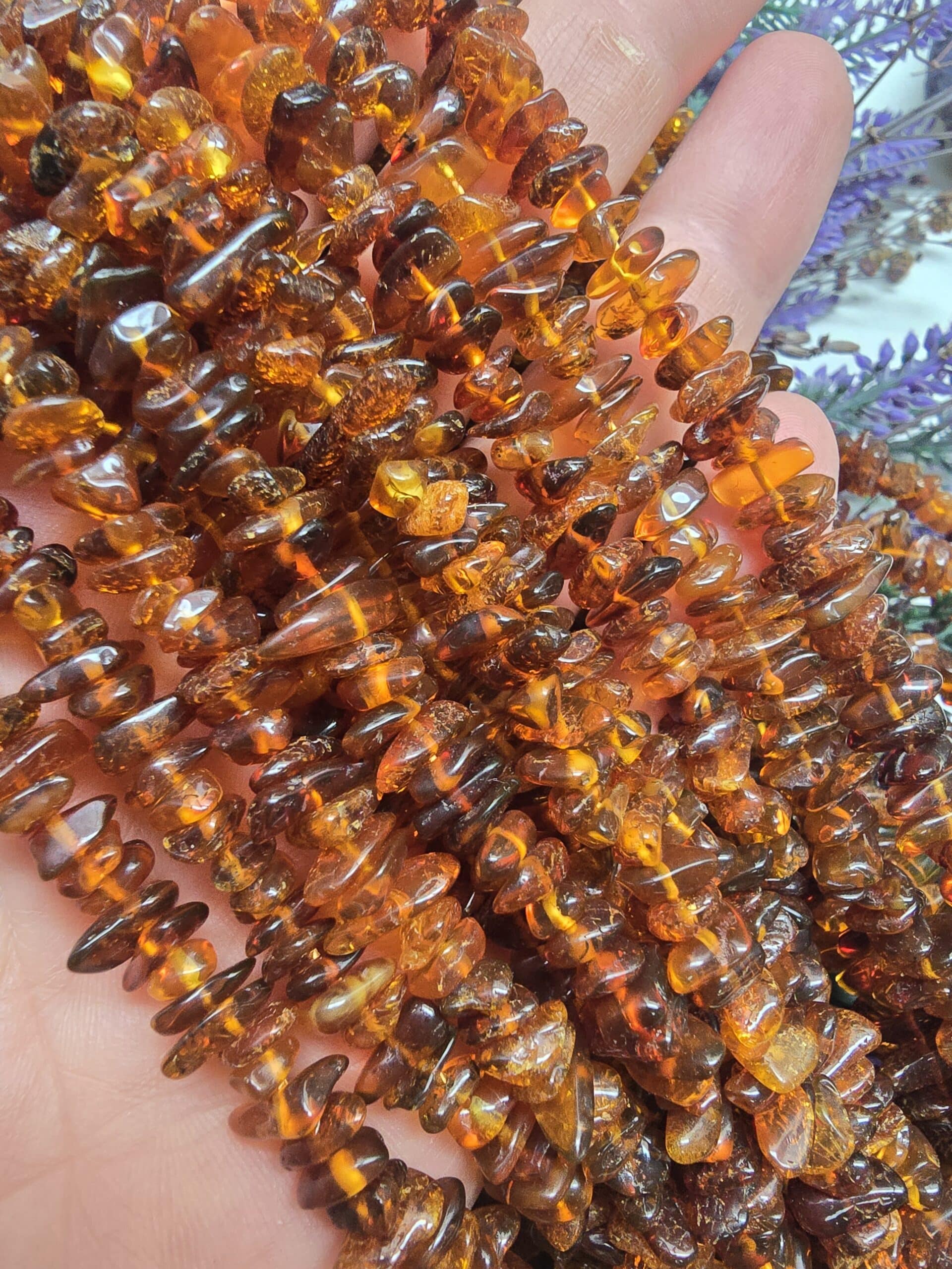 Kahve Kırık Şekilli Kehribar Uzun Dizi 45 CM