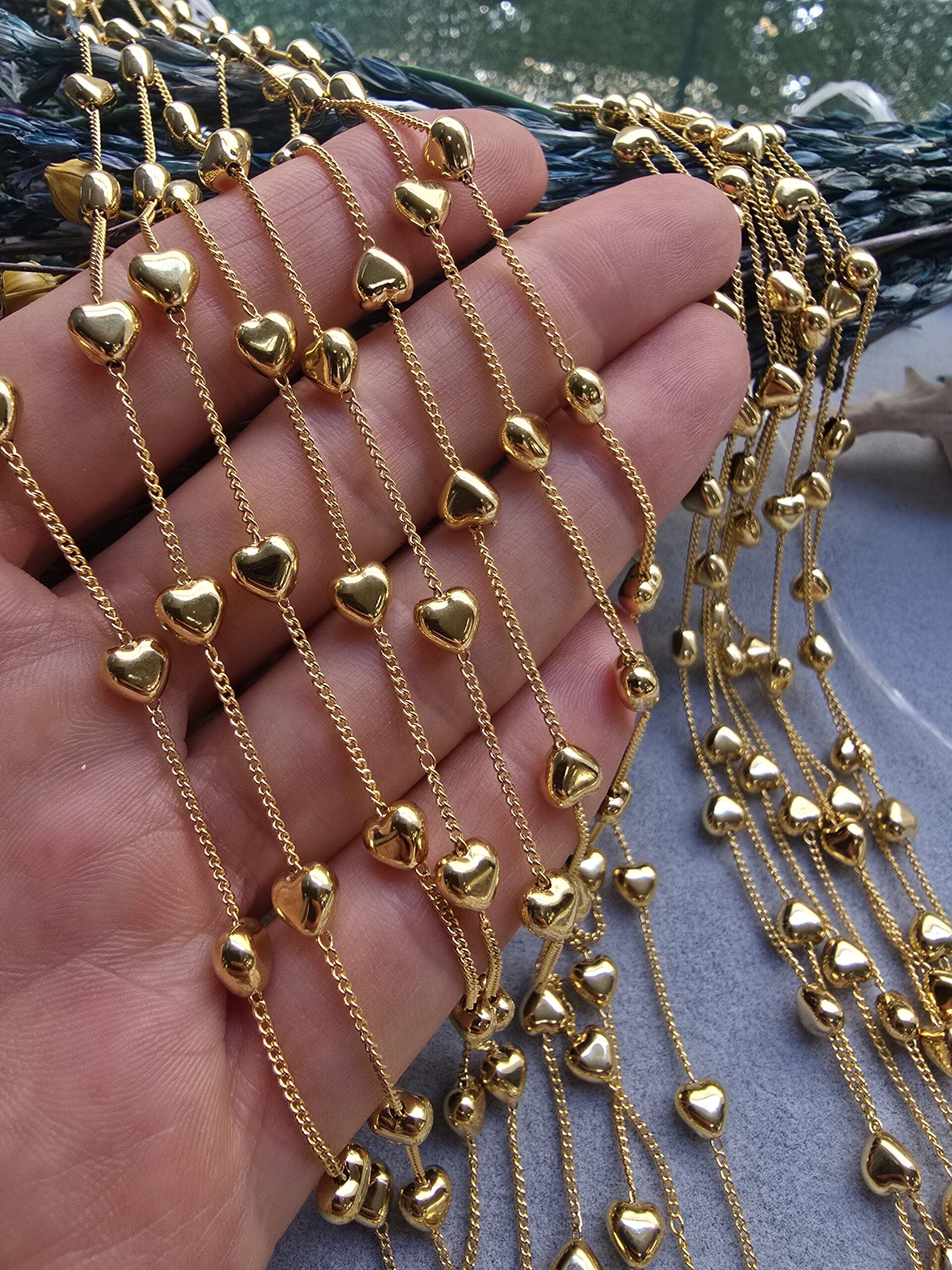 Kalp Detaylı Altın Kaplama Takı Zinciri :