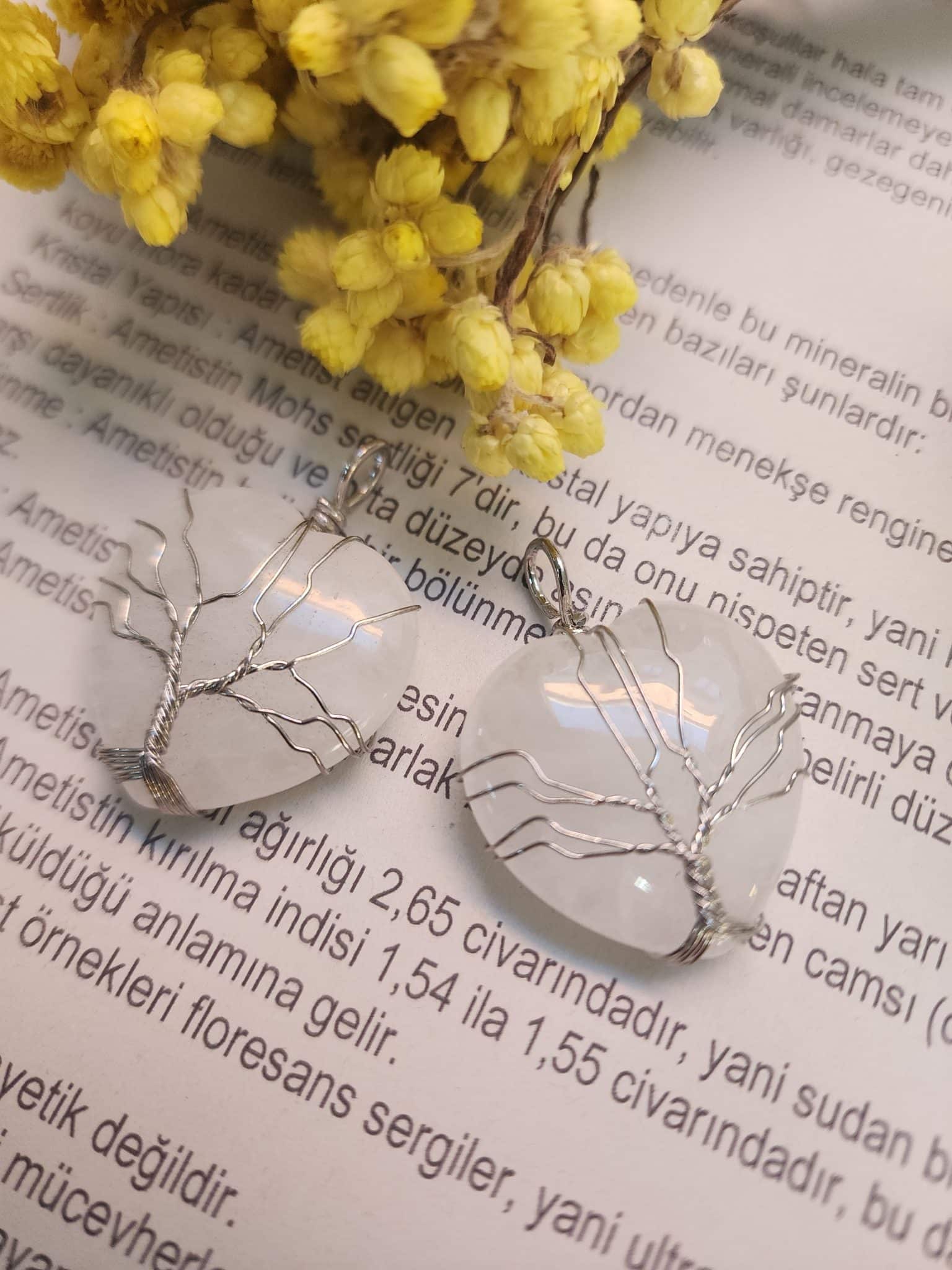 - Damarlı Kalp Kristal Kuvars taşları kolye ucu olarak kullanılabilir.