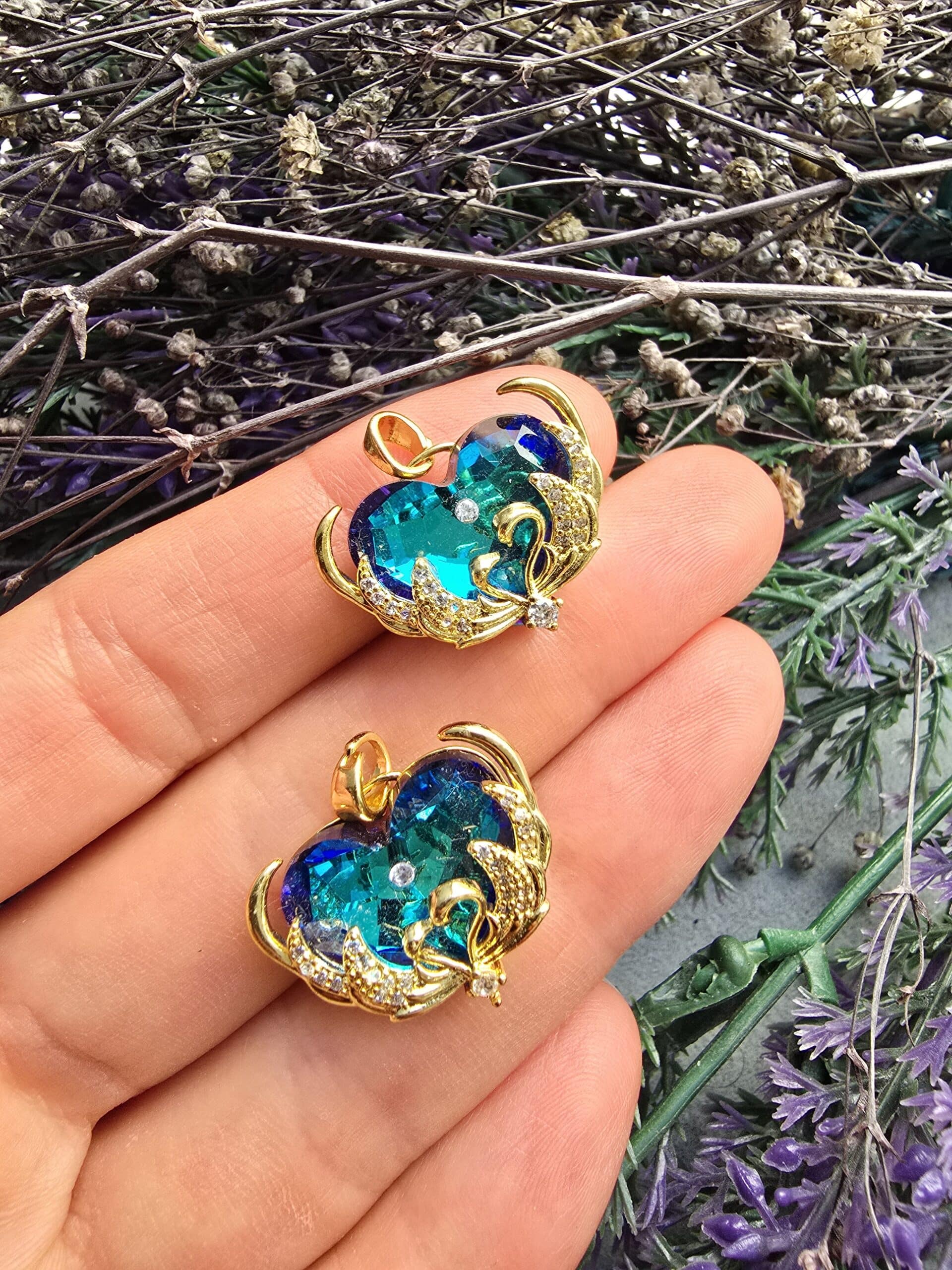 Kanatlı Deniz Mavisi Kalp Charm Kolye Ucu