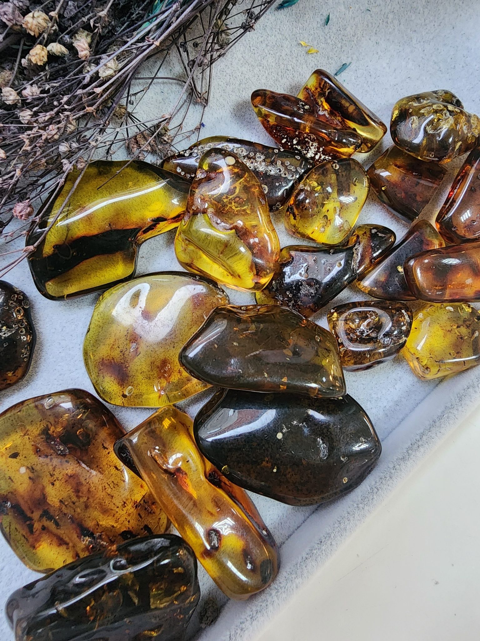 - Kehribar renkleri tamamen doğaldır