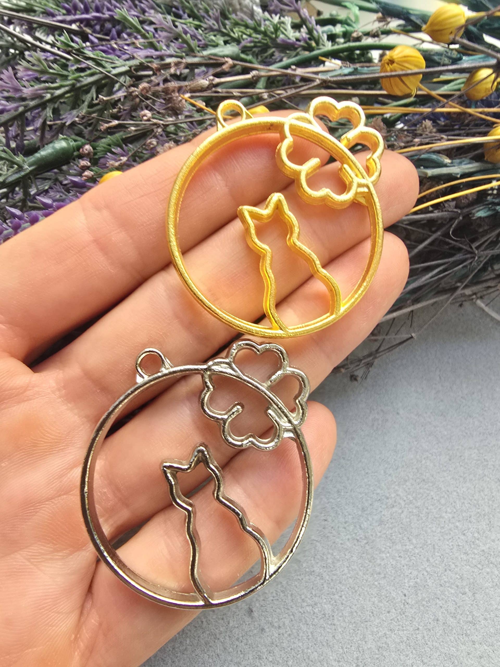 Kedi Desenli Epoksi Kalıbı Metal Kolye Ucu