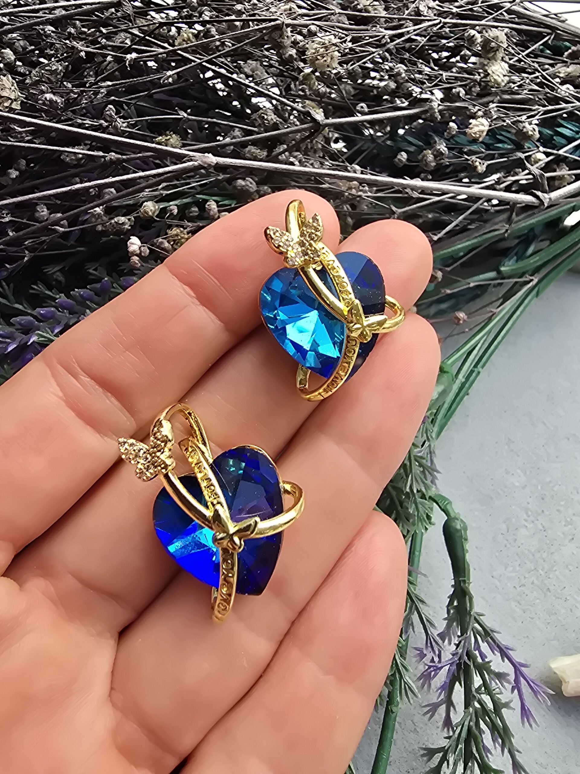 Kelebekli Mavi Kalp Zirkon Taşlı Kolye Ucu