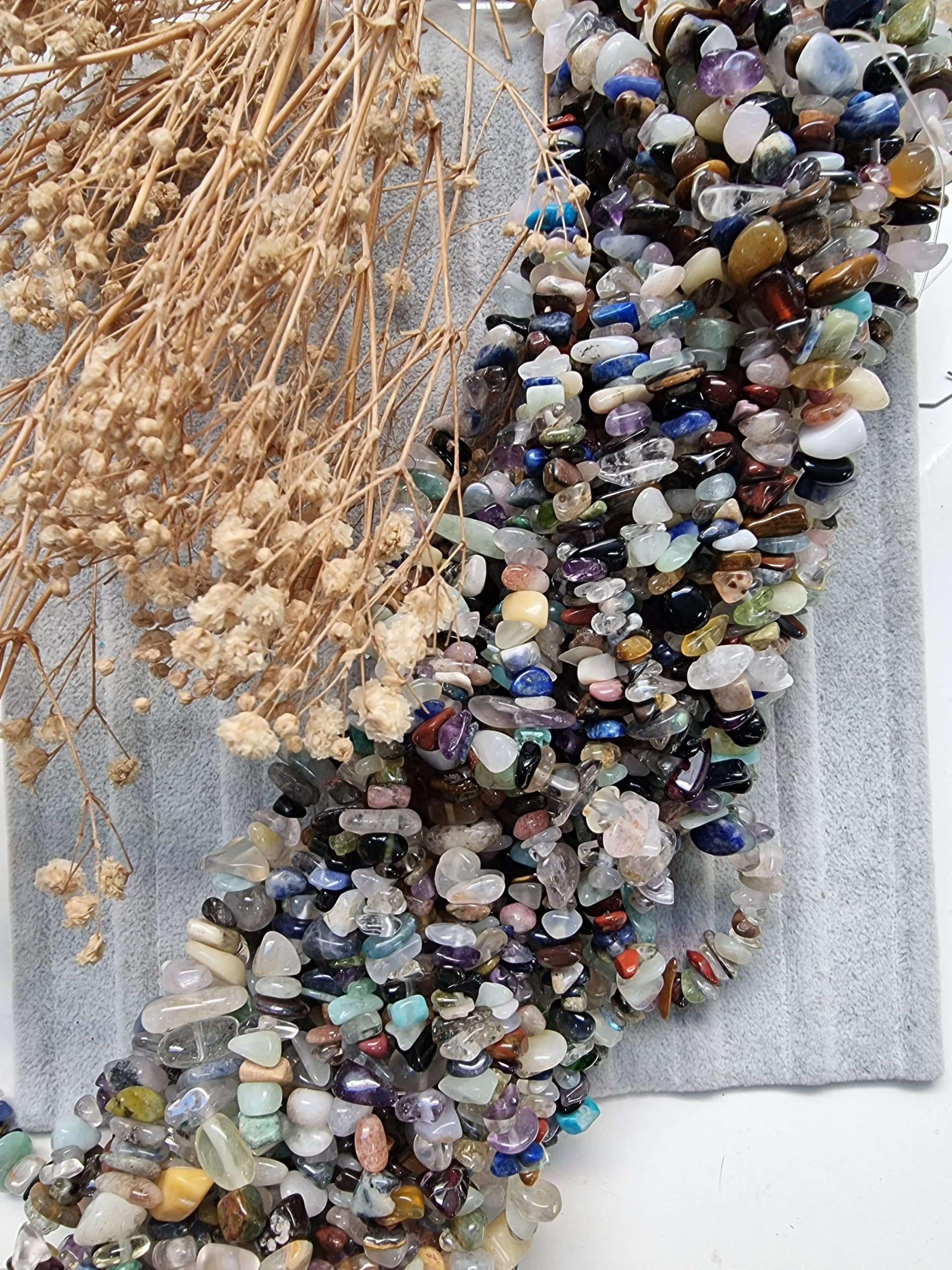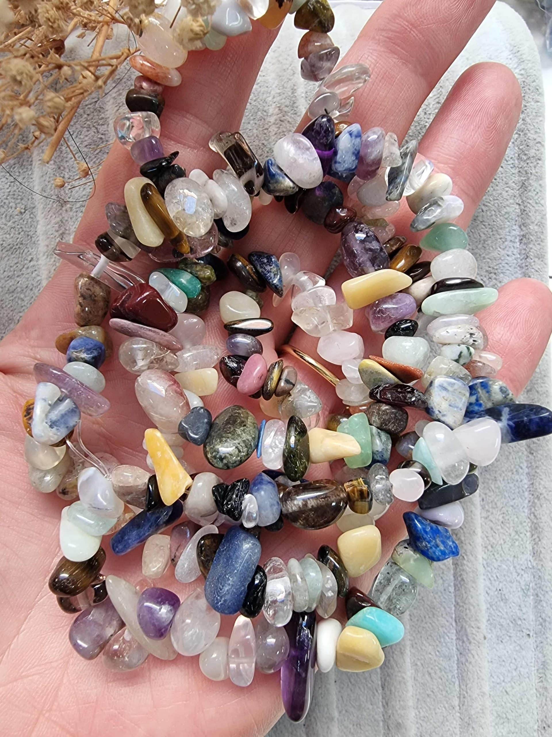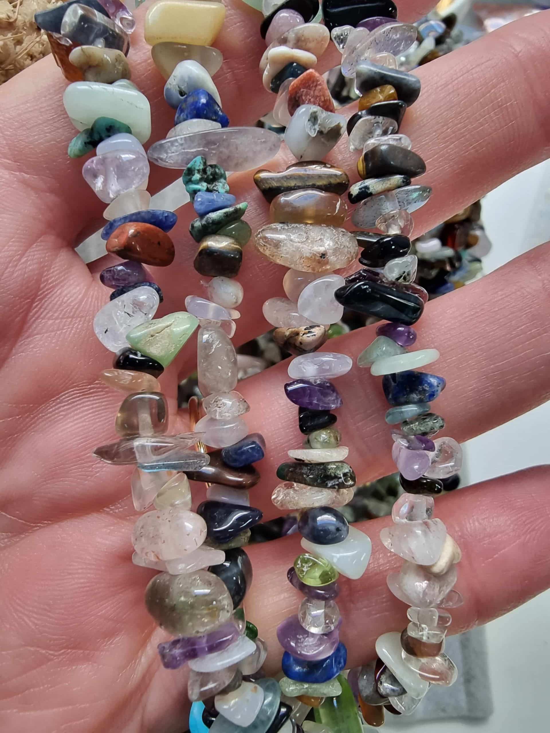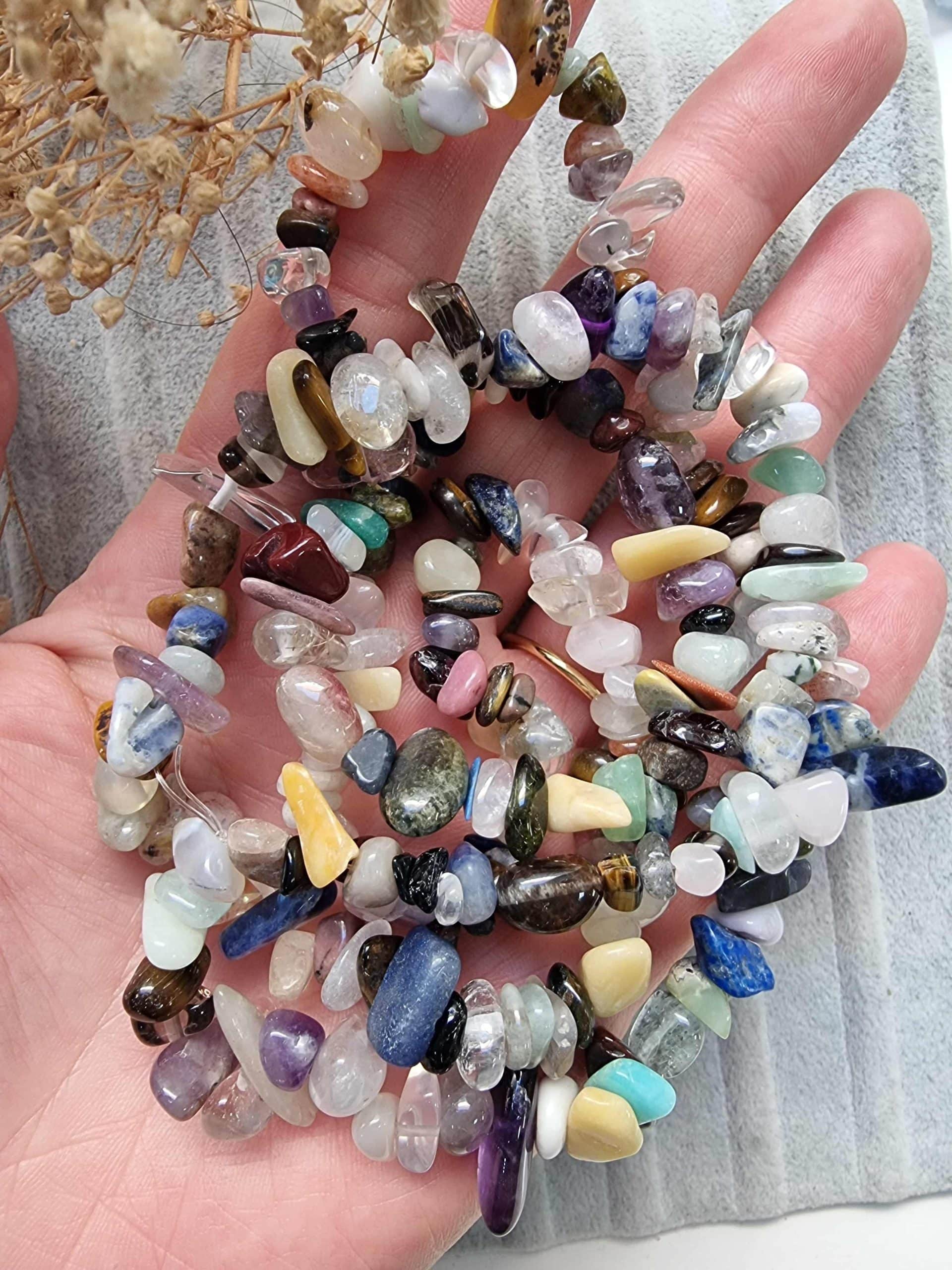 - Doğal kırık Çakra taşlarının boyutları 8 mm ile 14 mm arasında olup irili ufaklı olarak dizilmişlerdir.
