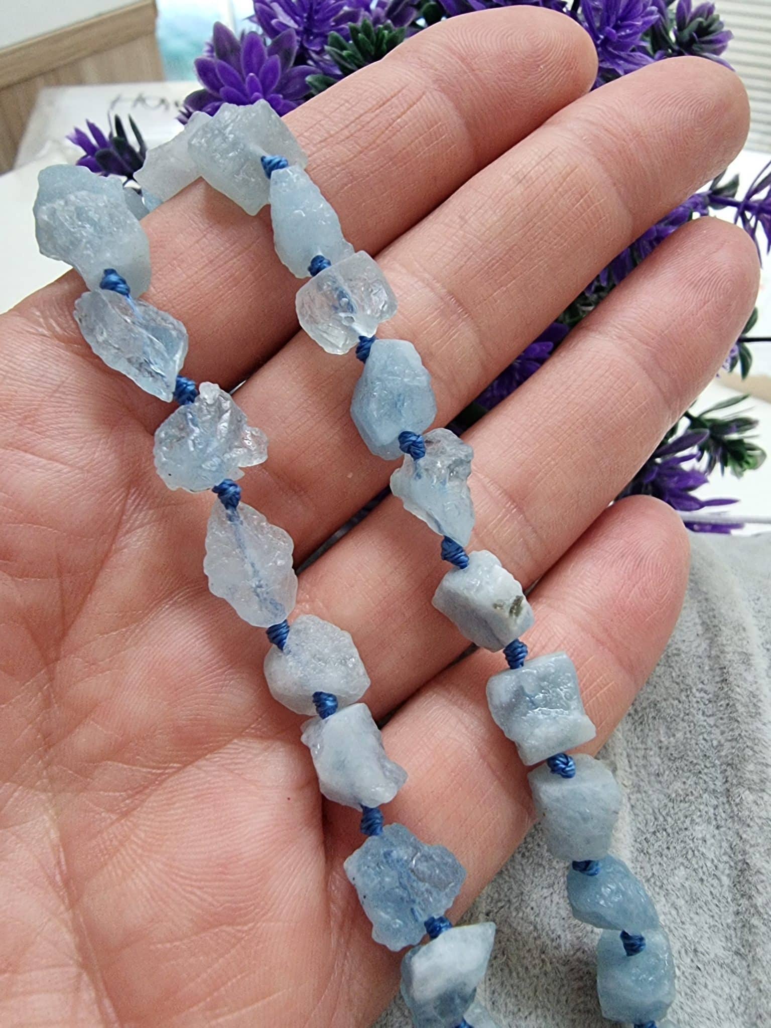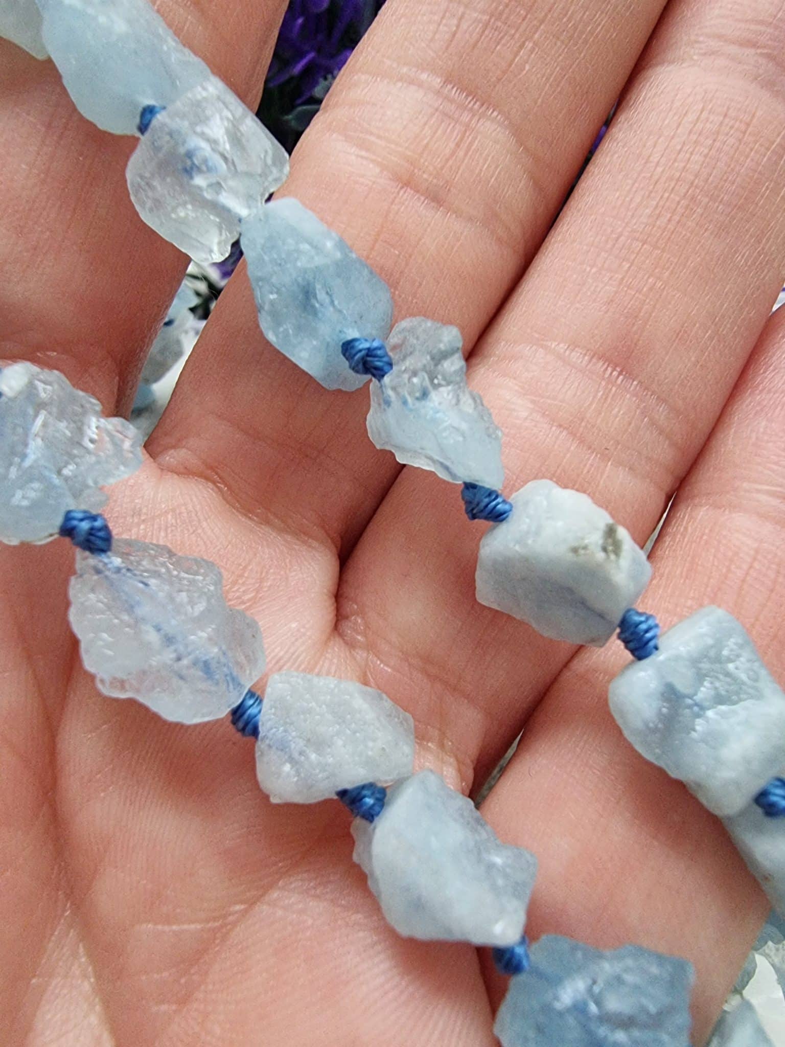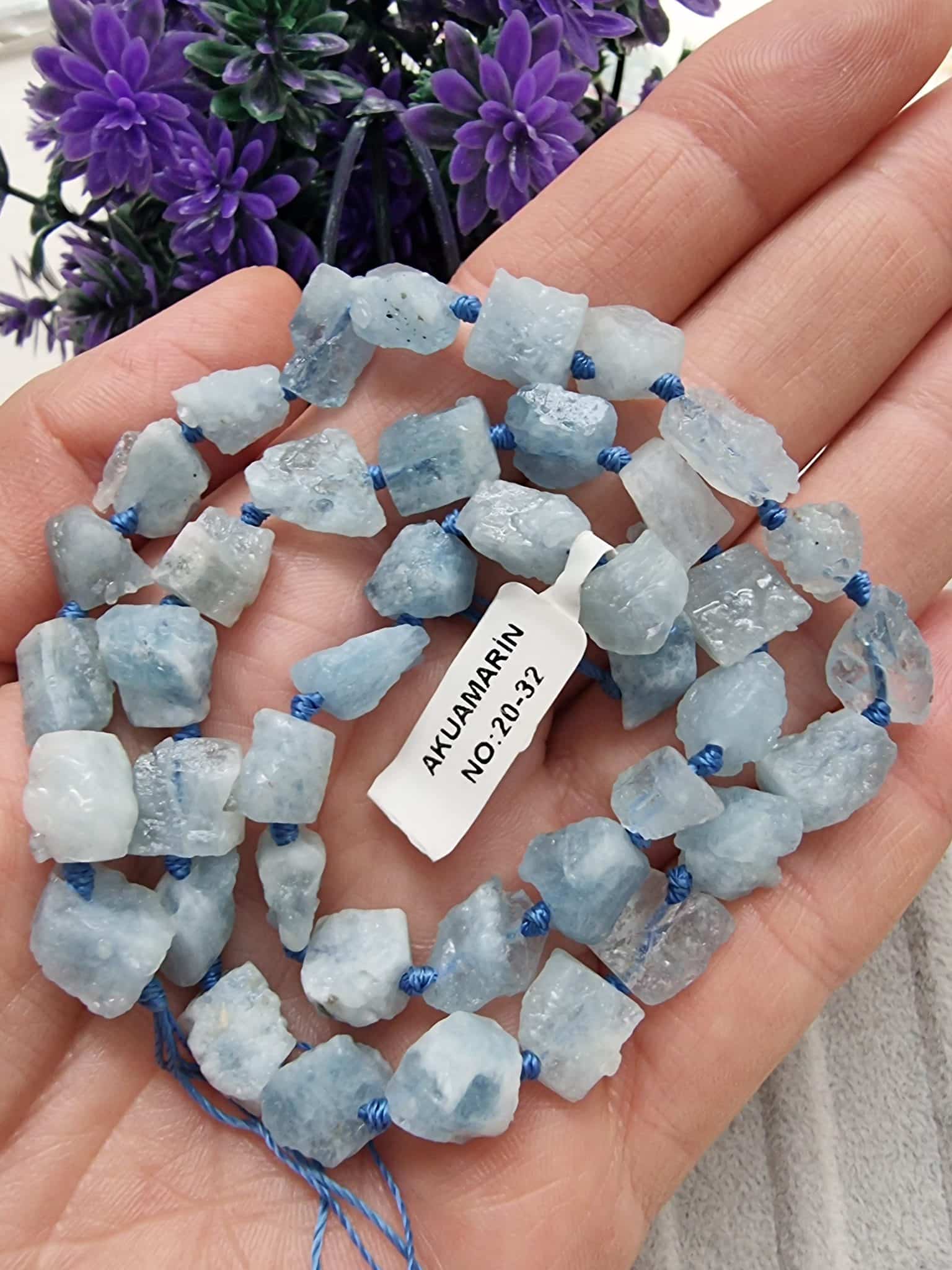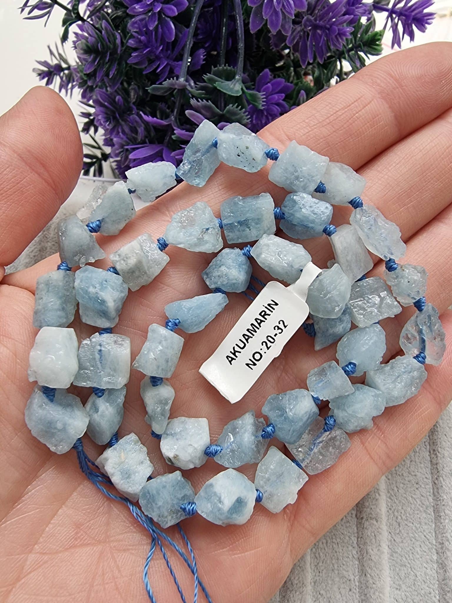 - Akuamarin Doğal Taş Dizi Uzunluğu 40 cm dir.